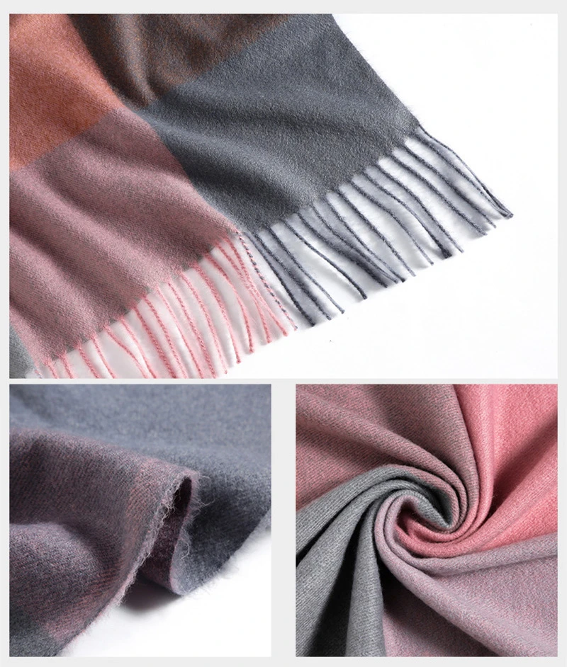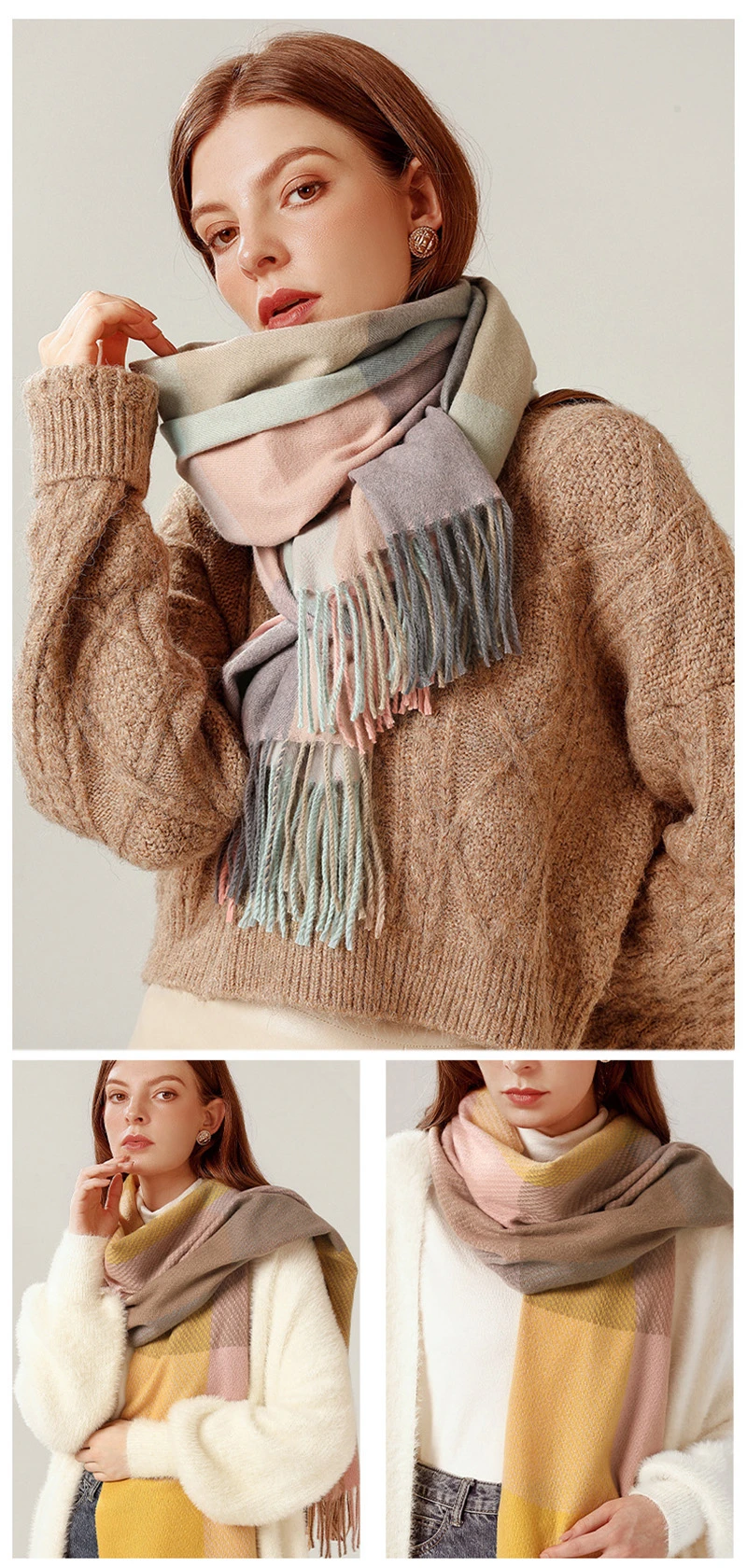 Зимний клетчатый шарф, женская теплая шаль из пашмии с длинной кисточкой