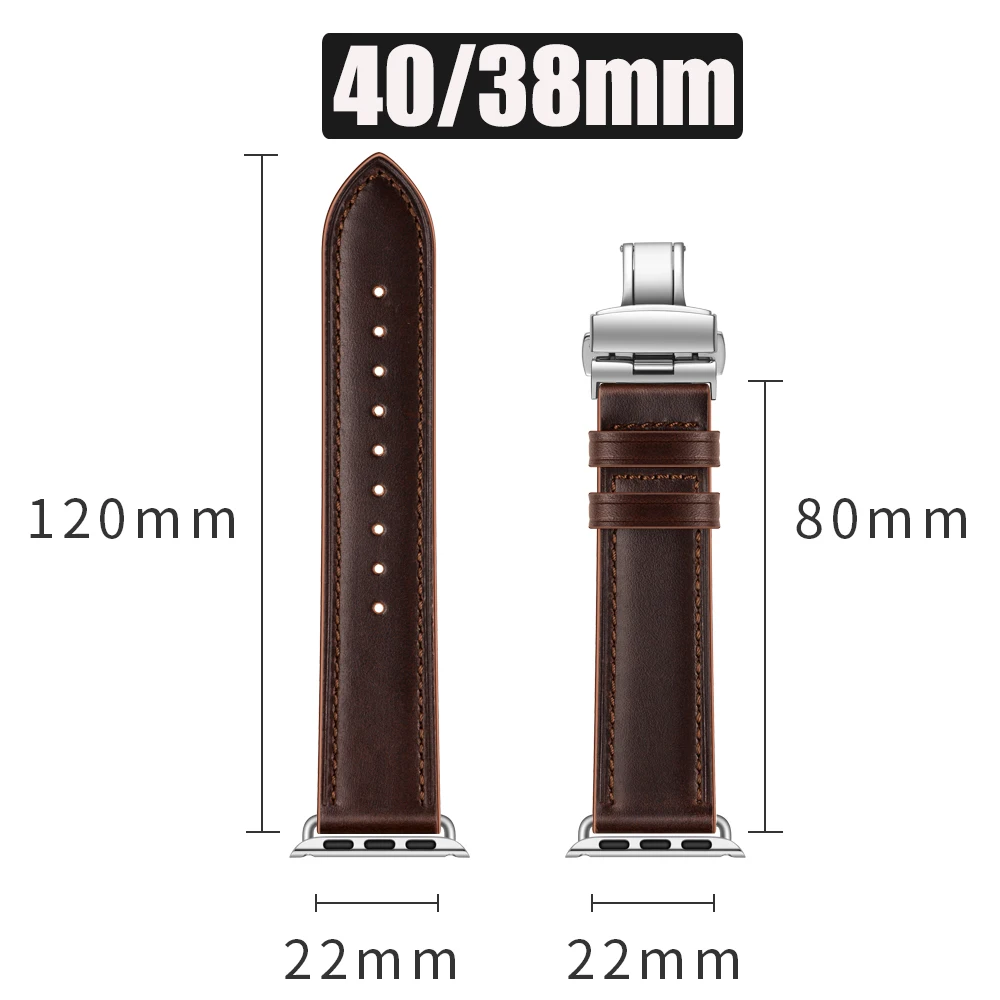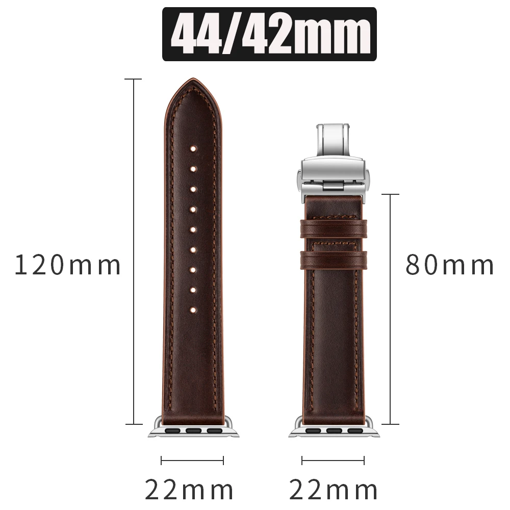 Ремешок для Apple Watch, ремешок из натуральной кожи, ремешок для Apple Watch 7 6 5 4 3 2 1 SE 45 мм 41 мм, ремешок с застежкой-бабочкой для iWatch 44/40 мм 42 38