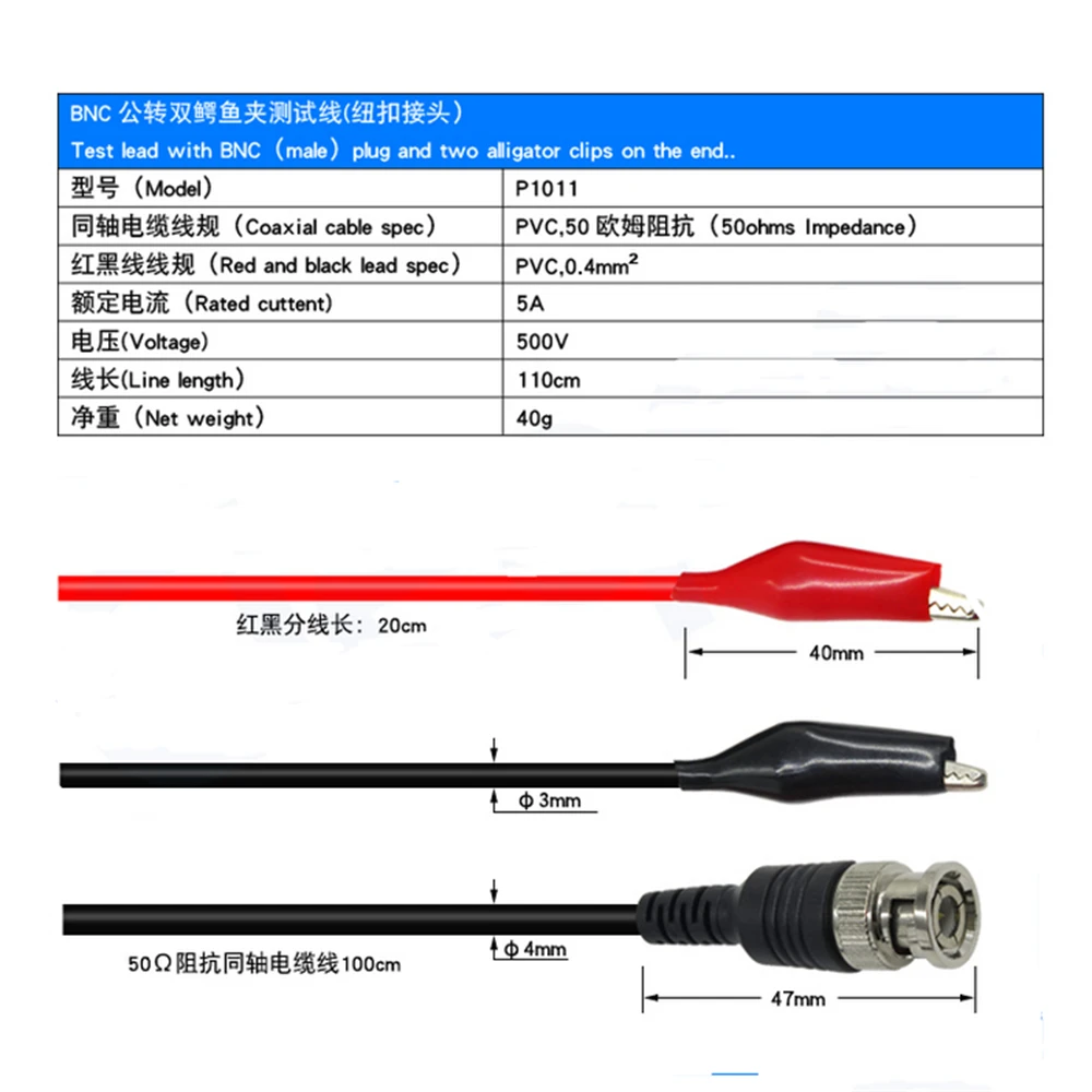 110 см BNC штекер Q9 к двойному зажиму аллигатора осциллограф тестовые щупы кабели разъем для генератора сигналов осциллографа
