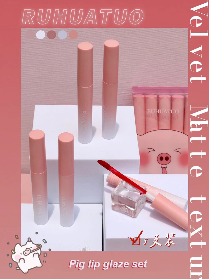 5 шт.компл. матовая помада, блестящий блеск для губ, легкая в нанесении глазурь, сексуальный красный оттенок для губ, женская косметика TSLM2