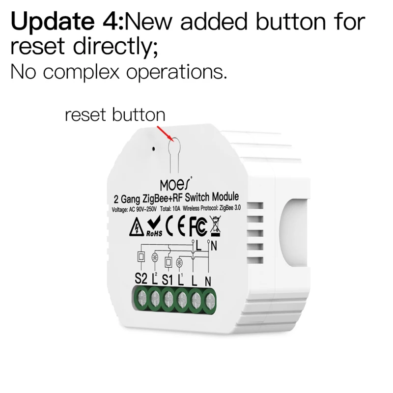5. Новая кнопка сброса на модуле переключателя для более простого метода сброса, чем раньше; Возьмите полный контроль подключенных приборов с таймерами, графиками и обратным отсчетом (1/5/30 минут, 1 час и т. Д.) С приложением Smart Life и Tuya; Делитесь контролем с семьей и друзьями для дополнительного удобства