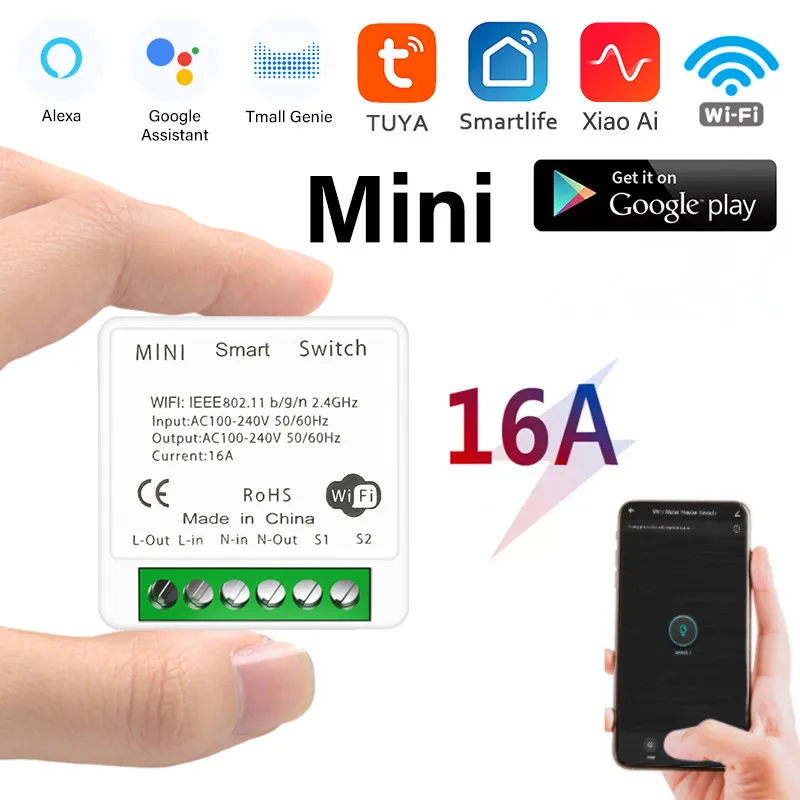Умный мини-переключатель 16 А, двухстороннее управление, Голосовое ...