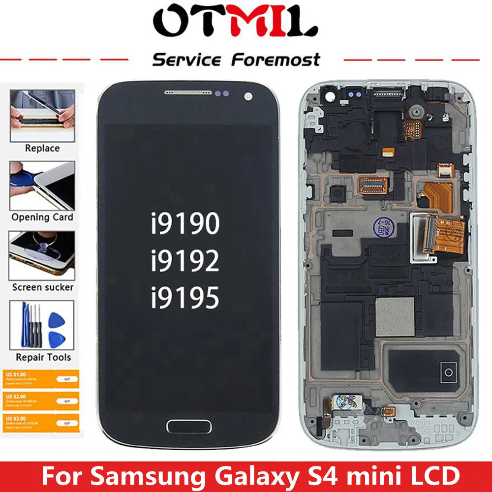 ЖК-дисплей AMOLED 4,3 дюйма для SAMSUNG S4 Mini, дисплей для Samsung Galaxy S4 mini I9190 i9192 i9195, ЖК-дигитайзер с сенсорным экраном и рамкой