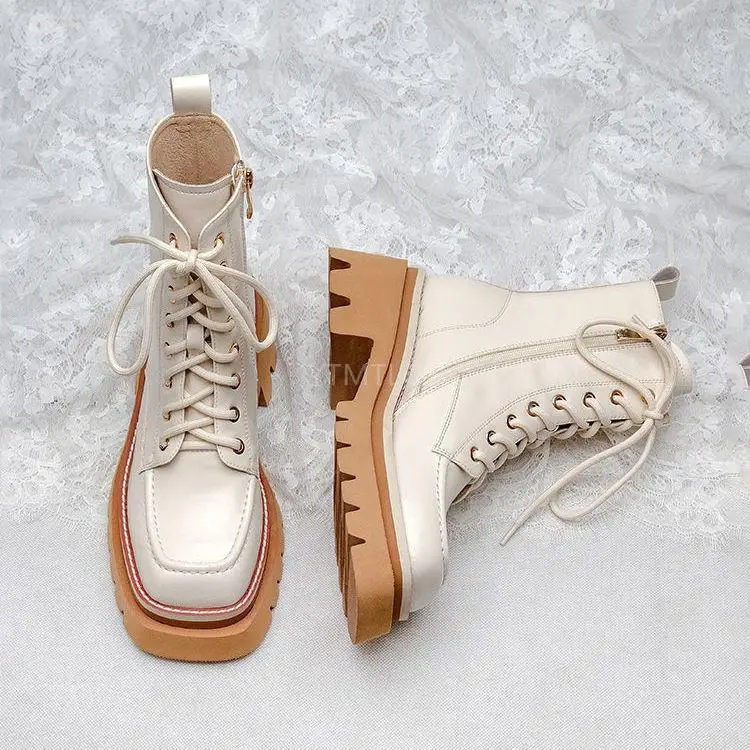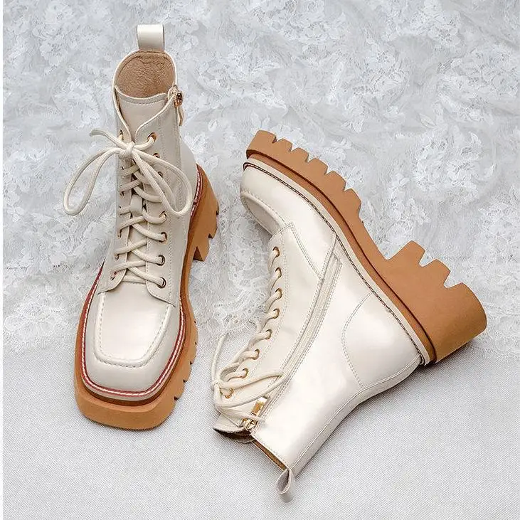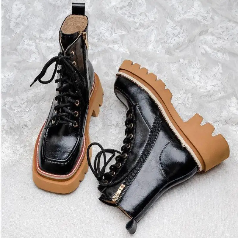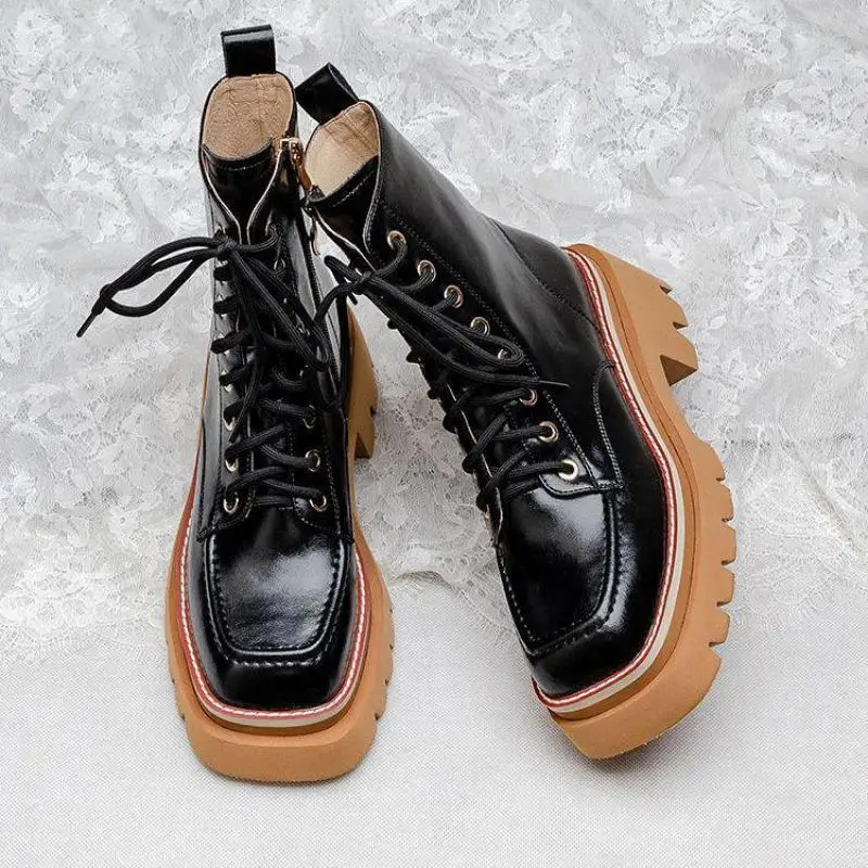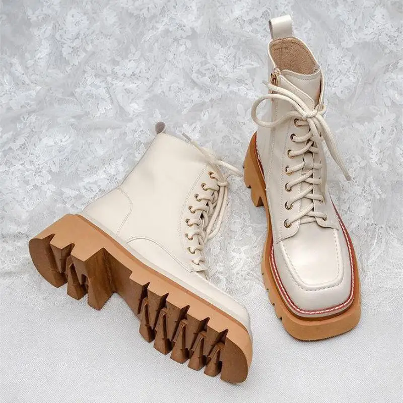 Женские ботинки 2022 Кожаные Мотоциклетные на толстой подошве увели...