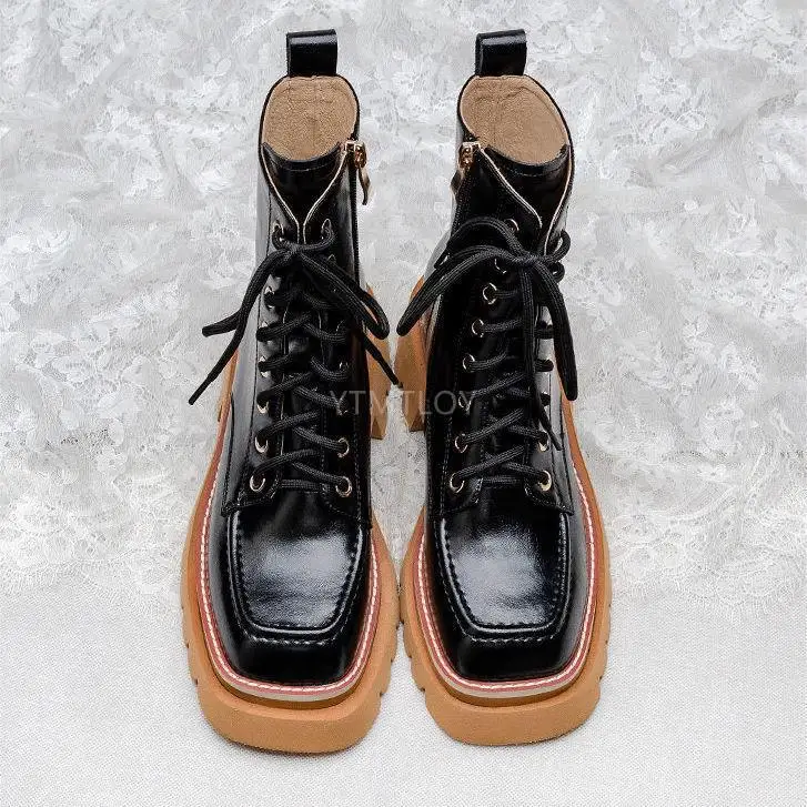 Женские ботинки из ПУ кожи, на шнуровке, с круглым носком