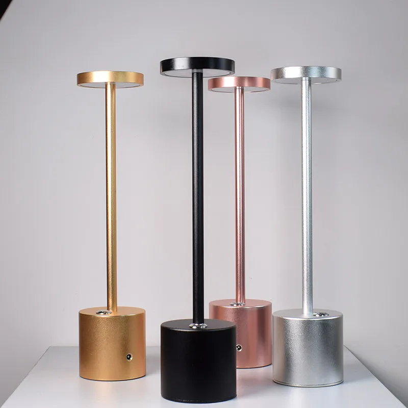 Простая Беспроводная настольная лампа, металлический светодиодный светильник с USB-зарядкой и 2 уровнями яркости, настольная лампа для чтения для ресторана