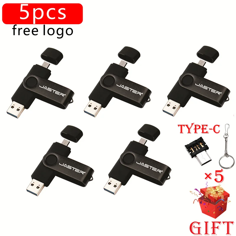 Флэш-накопитель JASTER вращающийся 5 шт.лот с бесплатным логотипом OTG, флэш-накопитель 4 ГБ, 8 ГБ, 32 ГБ, 16 ГБ, 64 ГБ, 128 ГБ, USB 2,0 для телефона, планшета, ПК, ноутбука