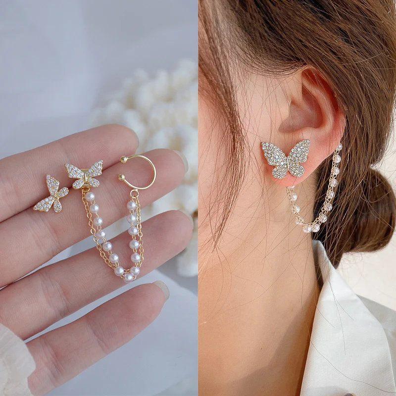 Блестящие циркониевые серьги-каффы в форме бабочки для женщин и дев...