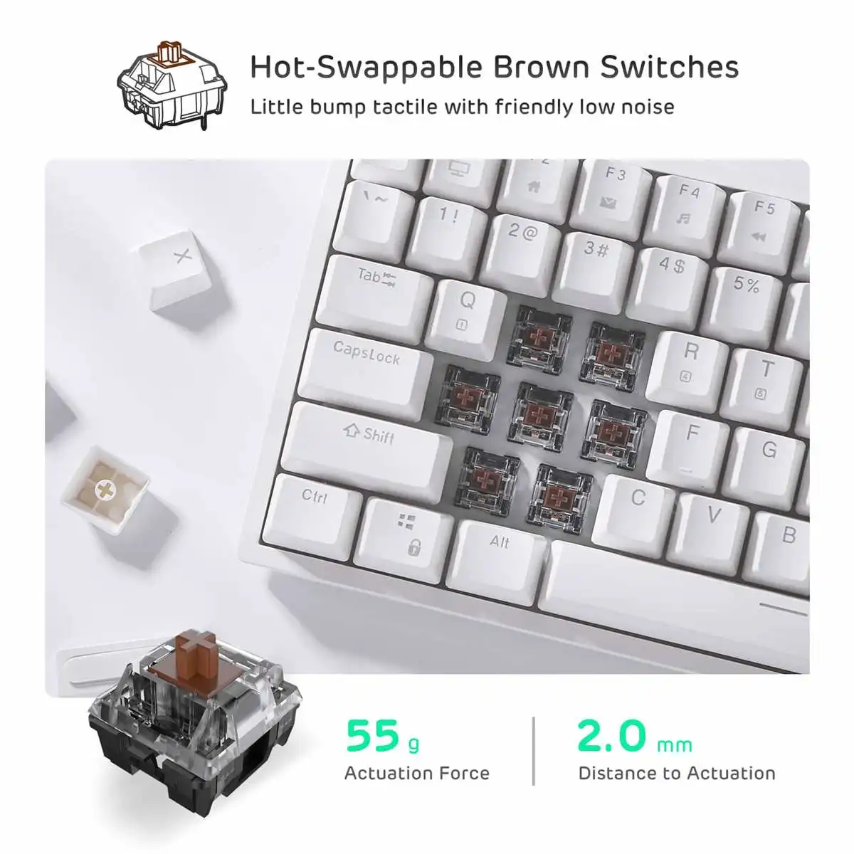 ● Переключатель RK с возможностью горячей замены: печатная плата с возможностью горячей замены позволяет свободно заменять 3 контакта/5 контактов без проблем с пайкой. Получайте удовольствие от создания собственной уникальной клавиатуры.