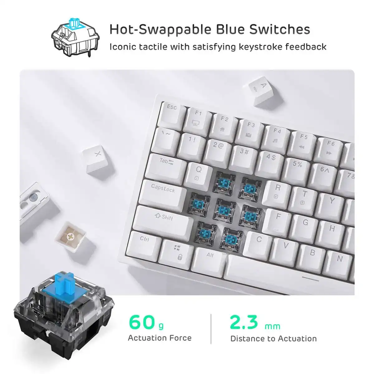 ● Компоновка 84 клавиш: Инновационная уникальная компоновка 80% отличается от традиционной клавиатуры TKL, которая отрезает больше места, поддерживая те же функциональные возможности, что и практичные стрелки, мультимедиа и кнопки управления.
