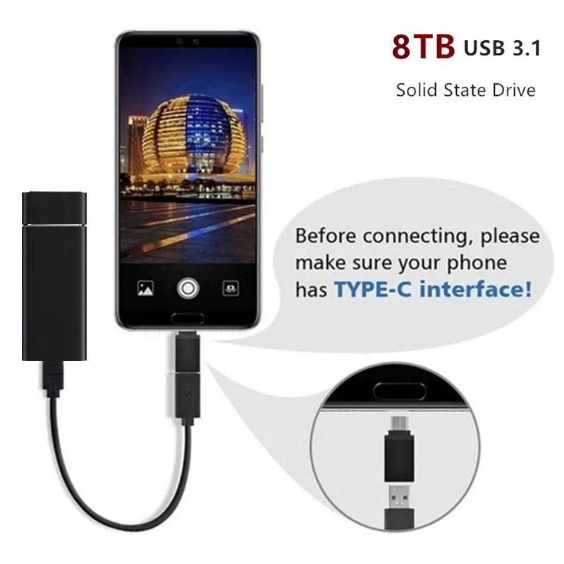 SSD мобильный твердотельный накопитель 8 ТБ 1 ТБ устройство для хра...