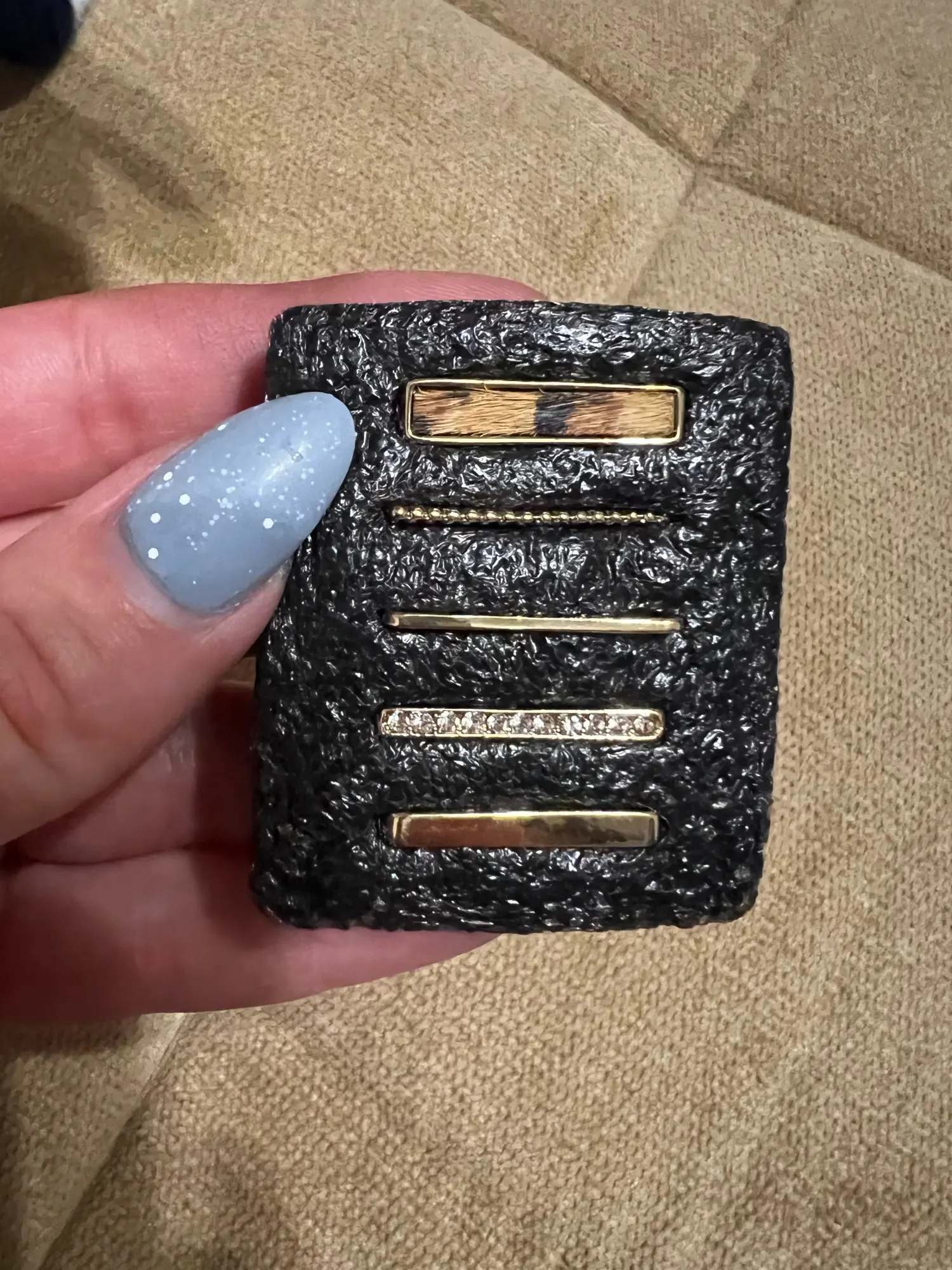 Я люблю идею поставить украшения на часы! Украшения отличные и идентичные фотографиям. Я рекомендую! Ювелирные изделия хорошо сидят на стороне отверстий (где я поставил 2), с другой стороны, с другой стороны, с другой стороны, мне пришлось немного поцарапать, прежде чем найти отверстие! You can remove The Metal Button to Then Put Your jewelry. Это очень хорошо, но лично я не понял сразу.