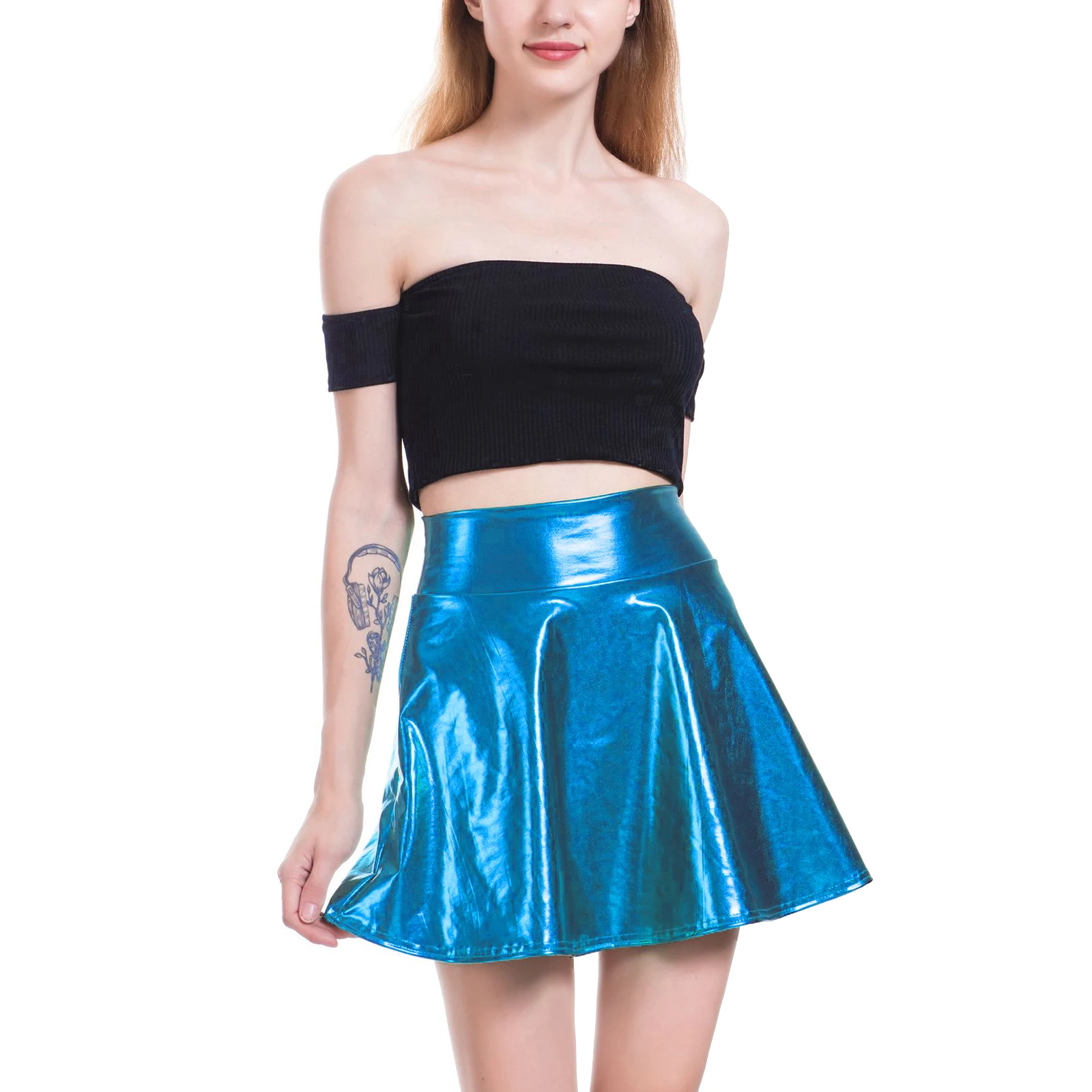 Женская Клубная полуюбка, однотонная Светоотражающая длинная Плиссированная юбка до бедра с высокой талией для вечеринки в пабе, модная сексуальная женская одежда