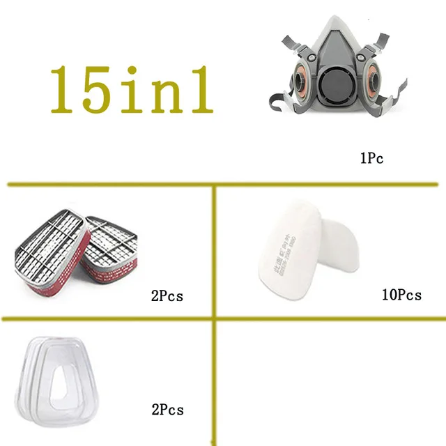 Тип 2- 15 в 1: 1*6200 маска, 2 * коробка фильтра, 10 * хлопковый фильтр, 2 * крышка фильтра