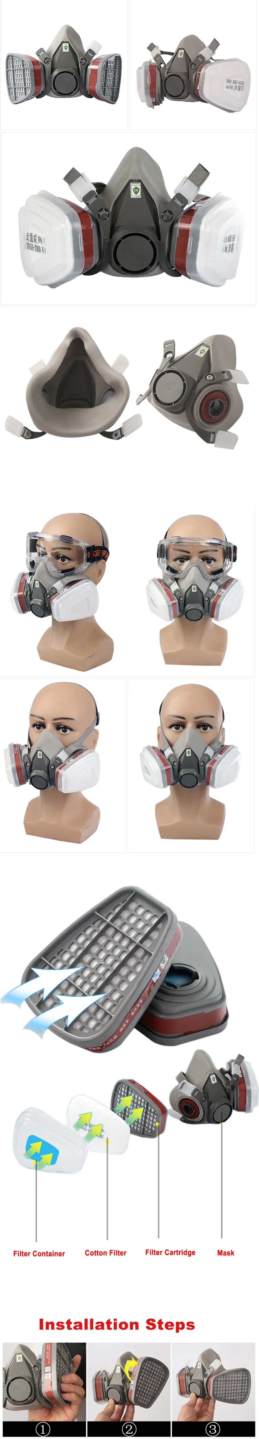 Респиратор K6200 для защиты лица, полумаска подходит для фильтров, токсичный паровой фильтр, украшение краски