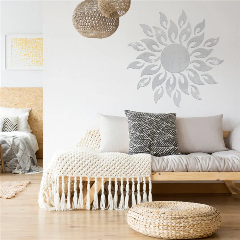 Настенная Наклейка, Роскошные 3D зеркала в виде подсолнуха, самоклеящиеся акриловые съемные настенные зеркала сделай сам, Декор для дома, гостиной