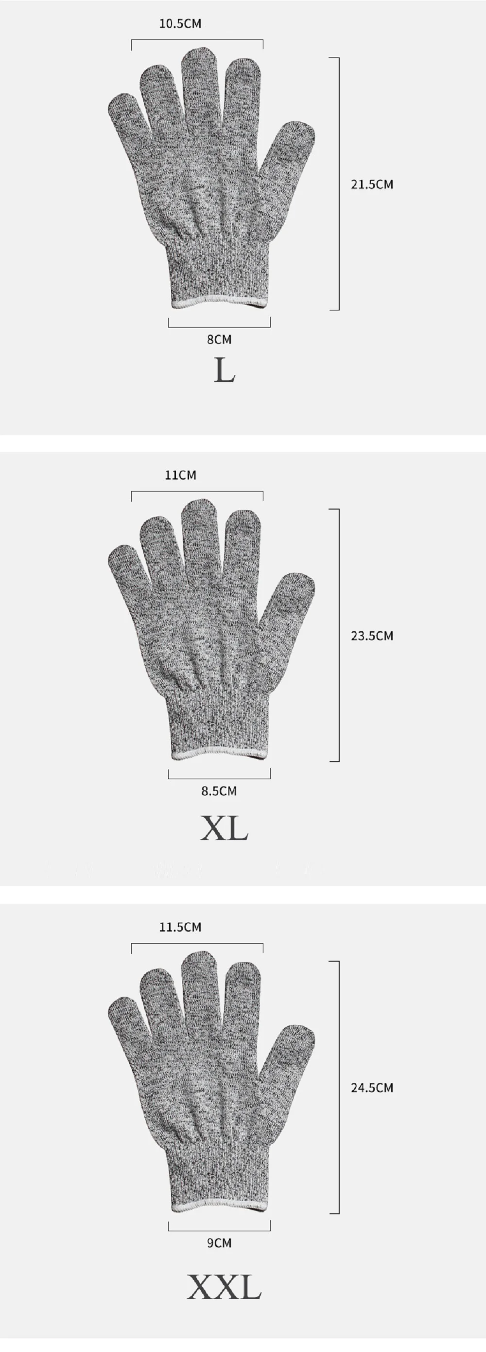 Xl24.5смПримечание:-Из-за различных цветов перчаток на разных размерах, фактический полученный предмет должен превалировать.-Пожалуйста, учитывайте разницу в 1-2 мм из-за ручного измерения.Обратите внимание:Трикотажный материал эластичный.Все размеры измеряются вручную с возможными отклонениями.Посылка включает в себя:1 пара * режущие перчатки