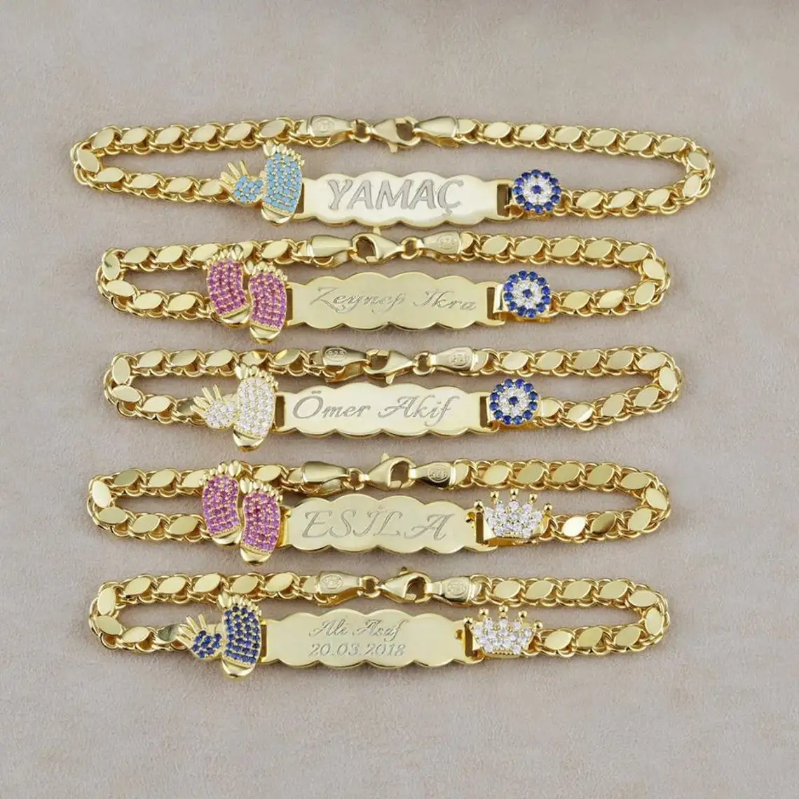 Персонализированный браслет с именем ребенка, браслет с именем ребенка, корона для ребенка, циркониевый Шарм, цветные камни, толстая цепь, подарок для новорожденного