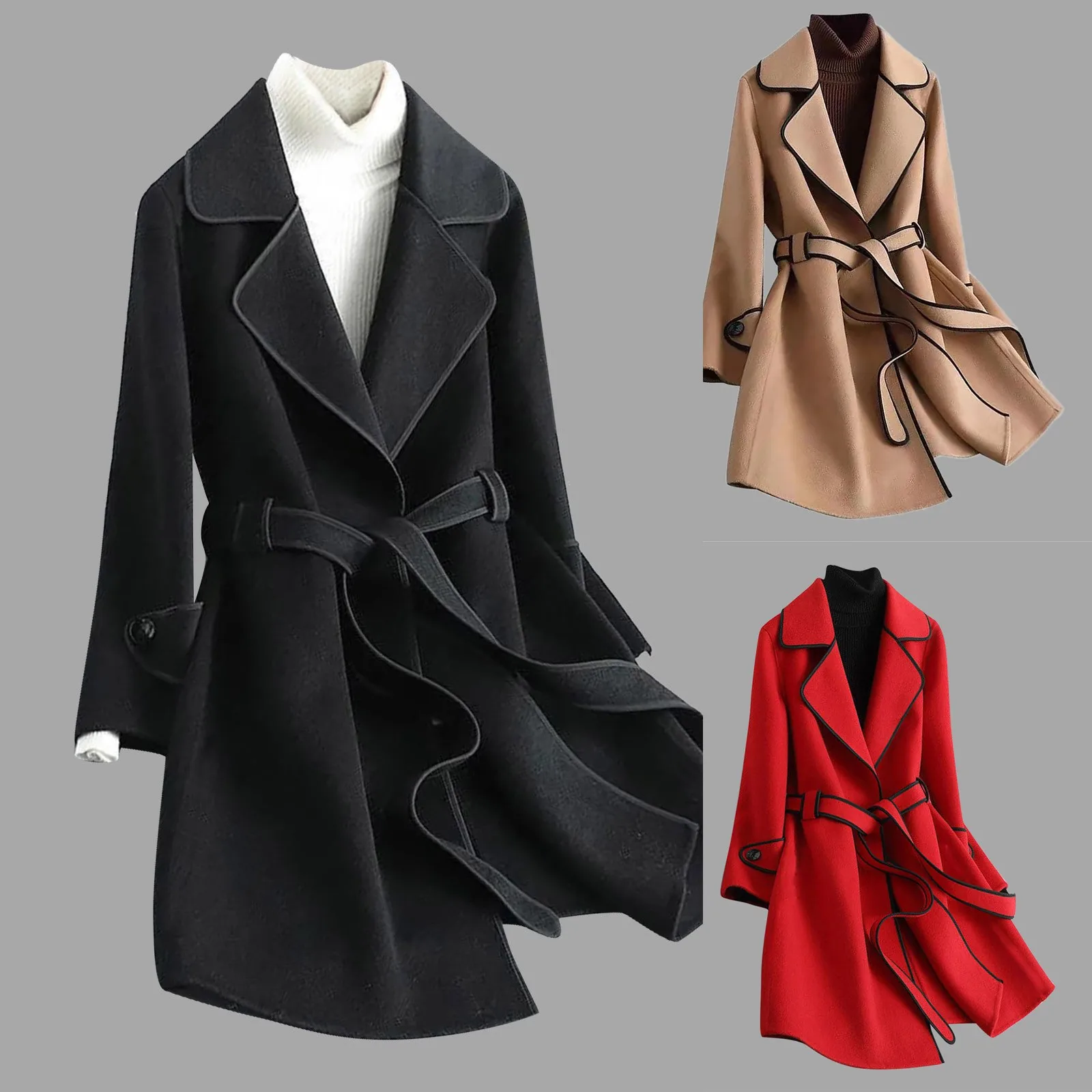 Женское зимнее шерстяное пальто с отворотом, Тренч, длинное пальто, верхняя одежда