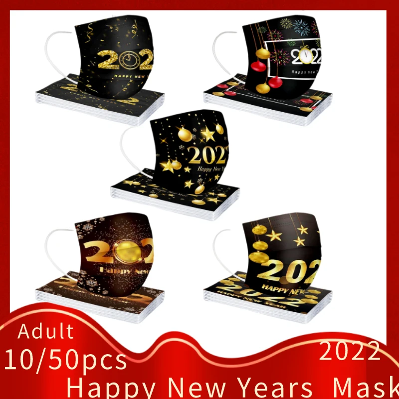 10 шт., маски Для Лица с новым годом 2022, Рождество, черные и золо...