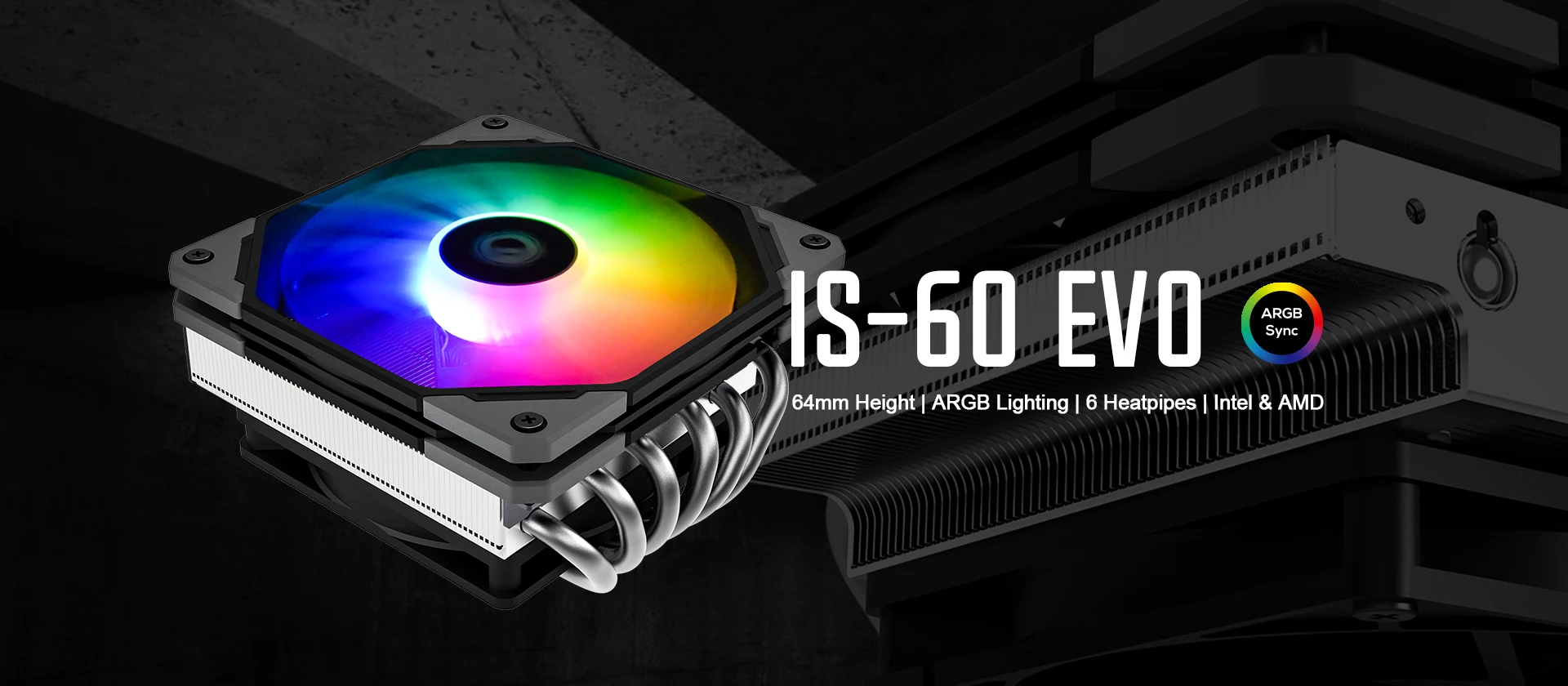 ID-охлаждение IS60 ARGB, охлаждающий вентилятор высотой 64 мм, низкопрофильный кулер для ЦП для ITX A4 чехол, тонкая шасси для AM4 LGA1200 1150 1151