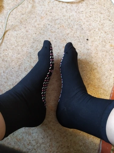Эти носки выглядят точно так же, как на картинке, но носить их больше раз, и я до сих пор не чувствую никакого самонагревания независимо от того, теплее или холоднее погода. Я думаю, что это больше как простые не скользкие носки.