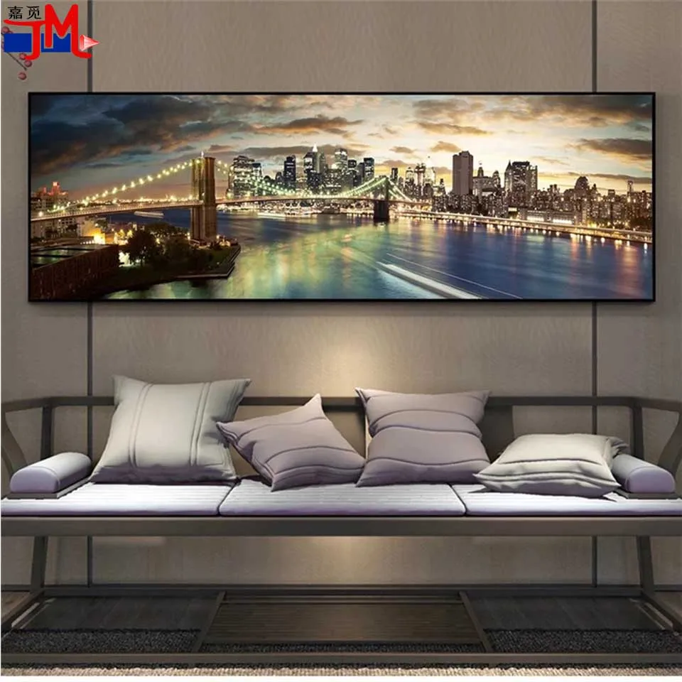 Нью-Йорк пейзаж 5D алмазная картина Бруклинский мост ночной вид мозаика настенные художественные картины Вышивка для декора гостиной