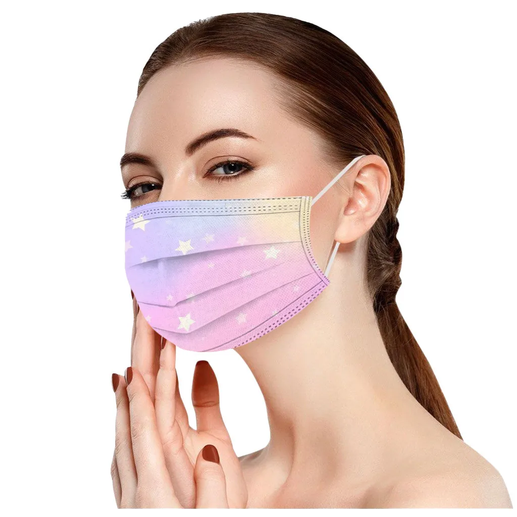 50 шт., трехслойная Пылезащитная одноразовая маска для лица с градиентным принтом