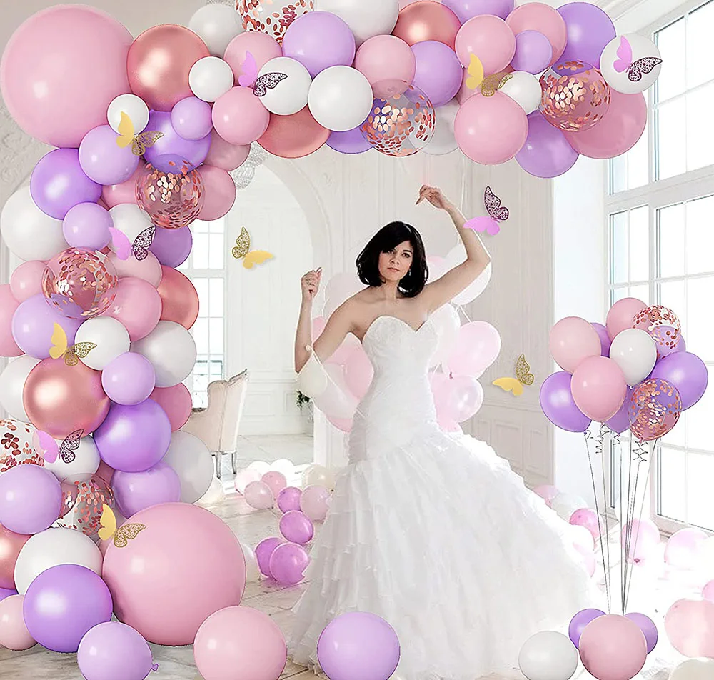 1 комплект розовый фиолетовый розовый Золотой воздушный шар с принтом "Бабочки" Гирлянда арочный комплект металлические розовые фиолетовые глобусы День рождения воздушные шары для свадьбы вечеринки декор