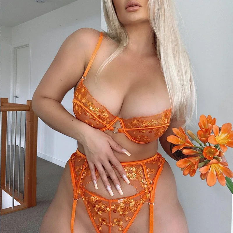 Женское сексуальное нижнее белье с цветочной вышивкой, комплект из ...