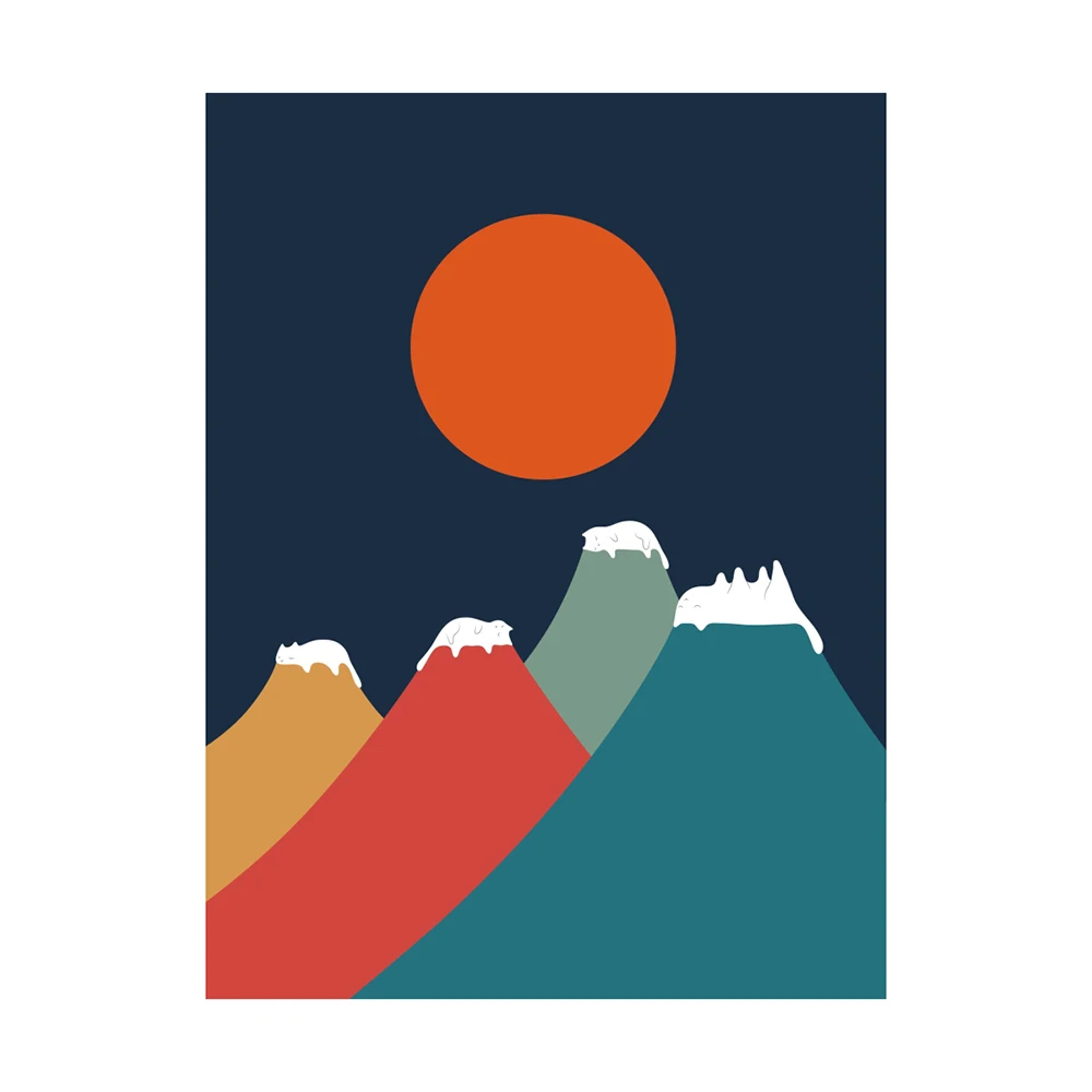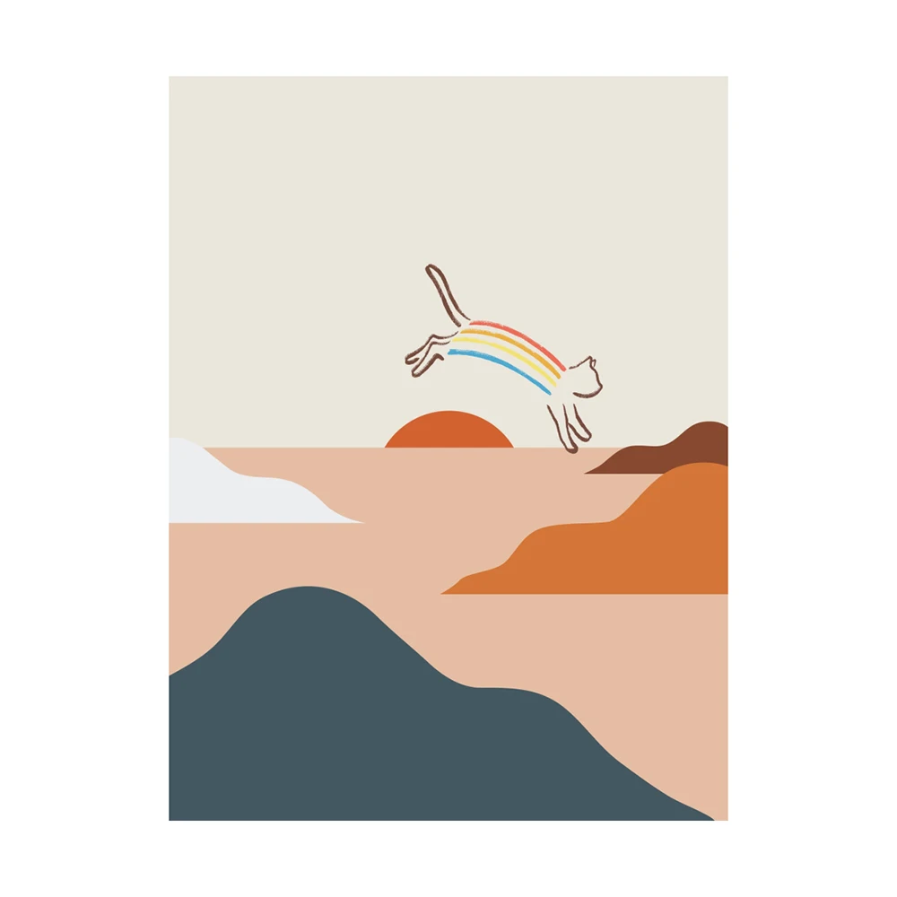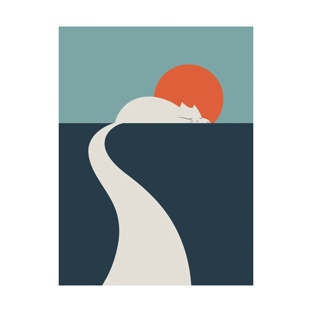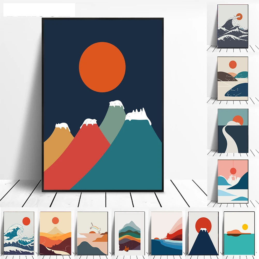 Абстрактные животные, кошка, пейзаж, настенный плакат и печать, большая волна, холст, живопись, горы, солнце, картина для гостиной, домашний декор