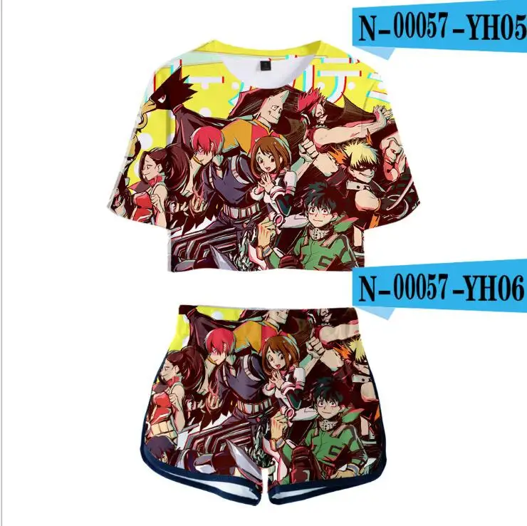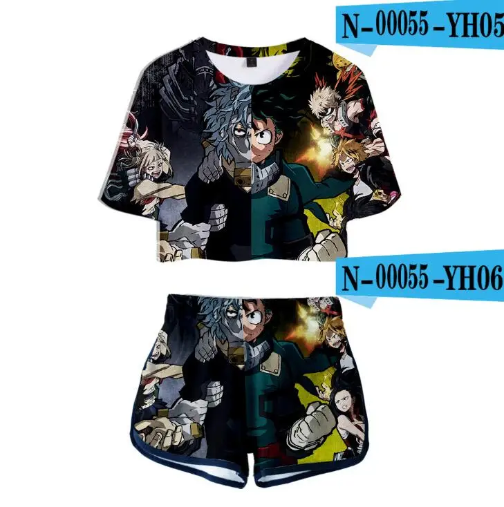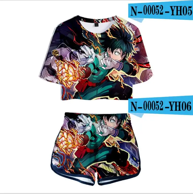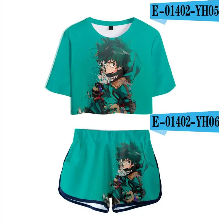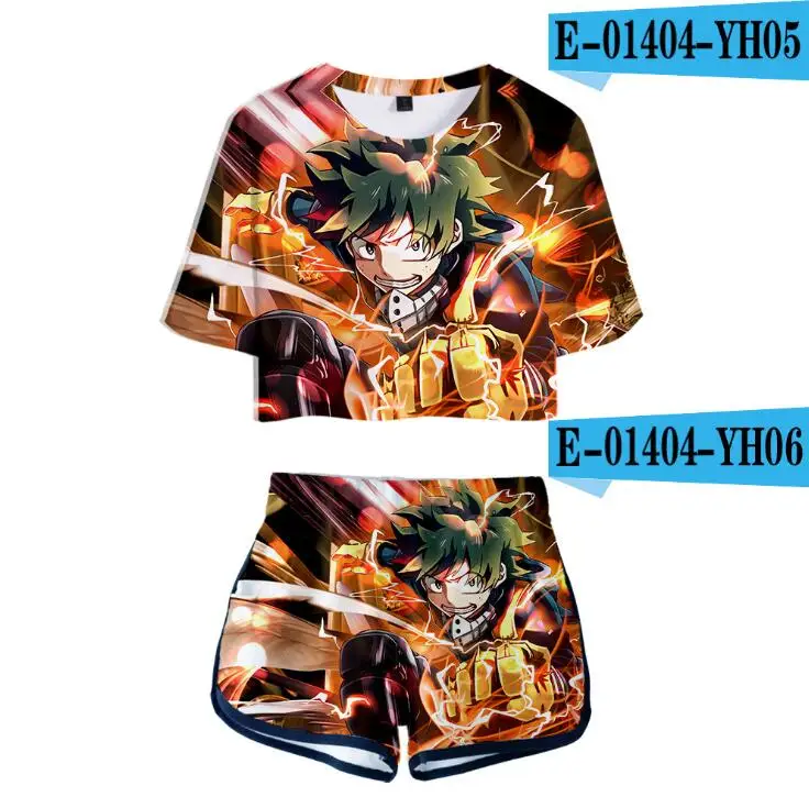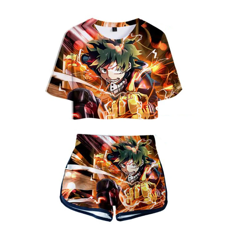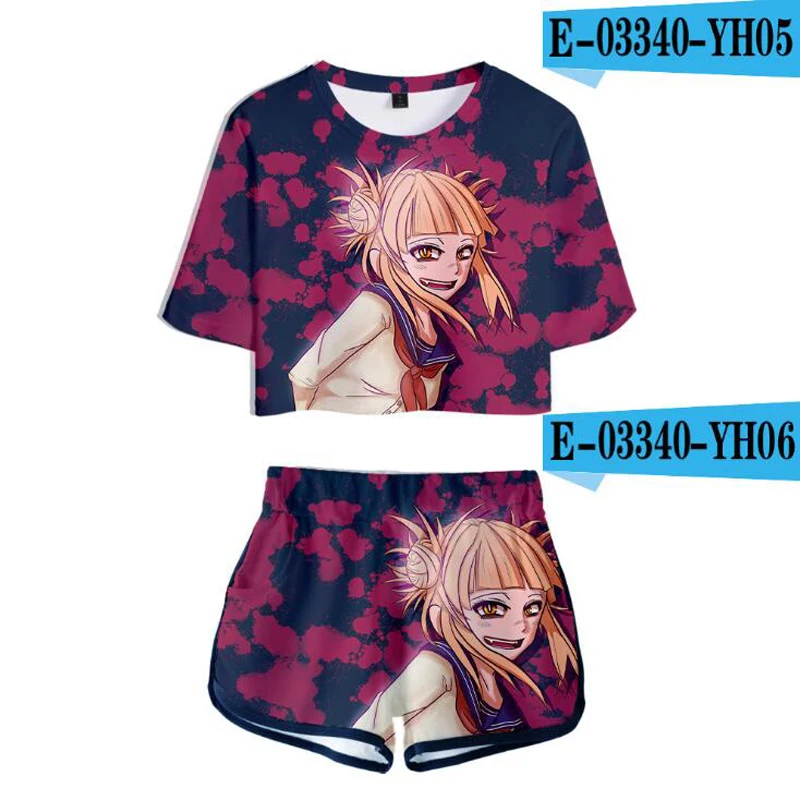 Женский костюм с героями фильма Моя геройская Академия, комплект из двух предметов с 3D рисунком из аниме, футболка и шорты, костюмы для косплея Izuku Midoriya химико Тога