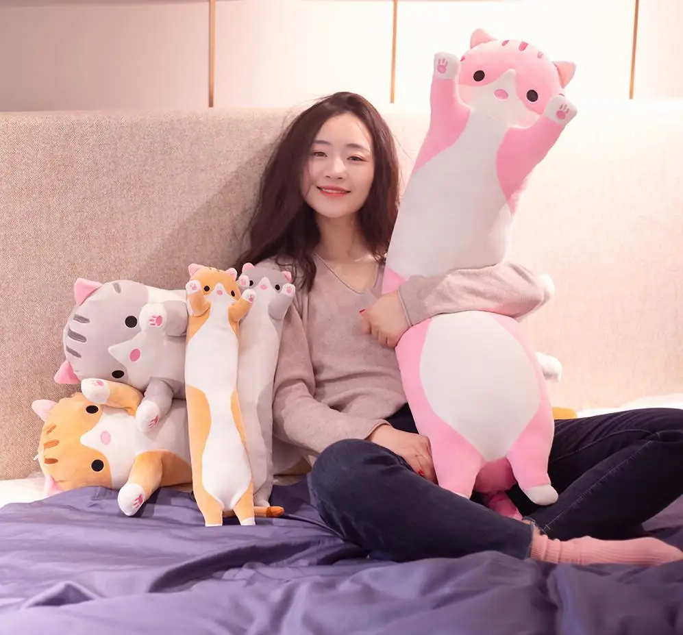 Симпатичная мягкая длинная подушка для кошек 50 см, плюшевые игрушки, мягкая подушка для сна в офисе, Подушка для сна, Подарочная кукла для девочек
