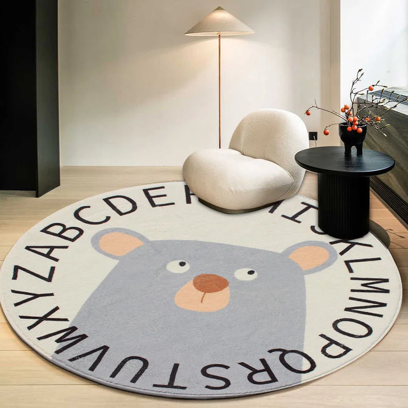 Круглые ковры в скандинавском стиле с изображением животных, медведь, Лев, толстые детские напольные коврики, Противоскользящие коврики, коврики для ползания для детской комнаты, 100 см