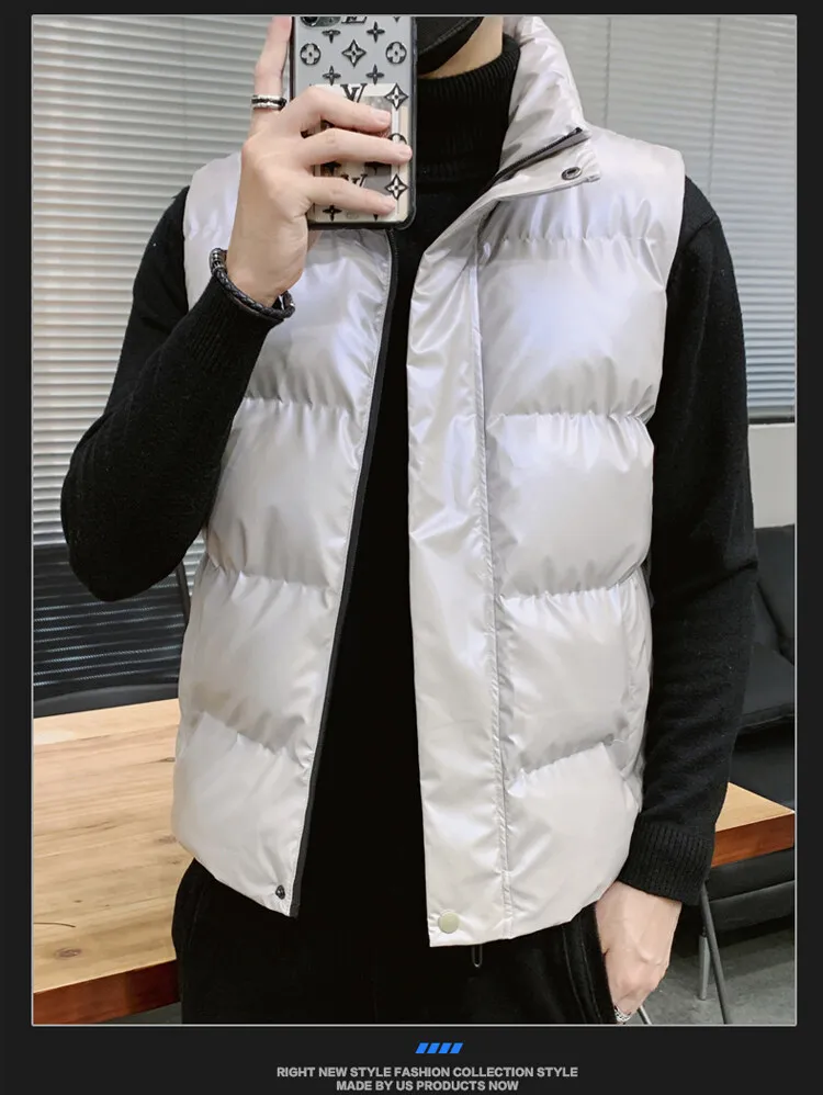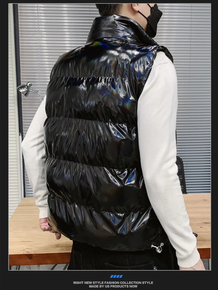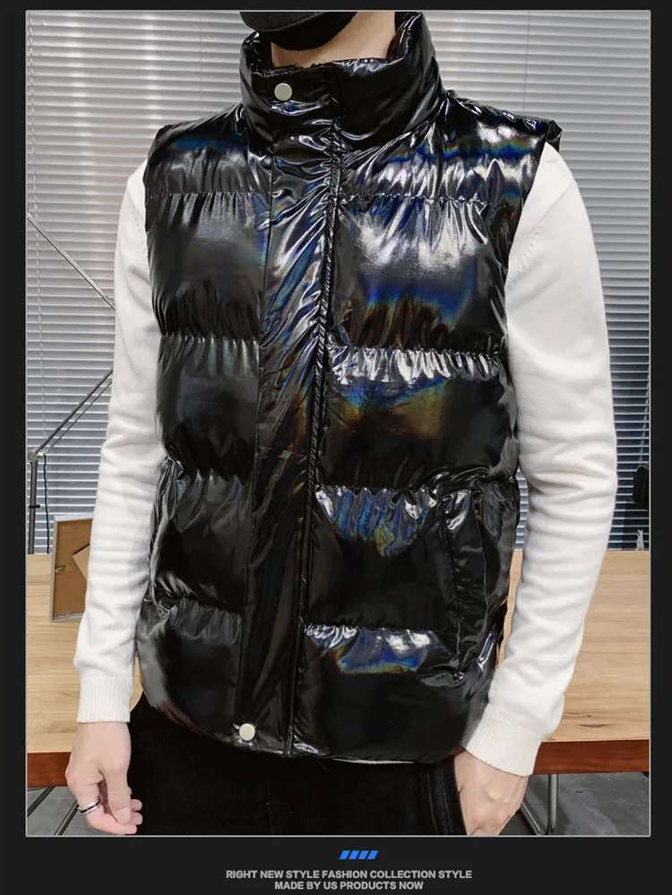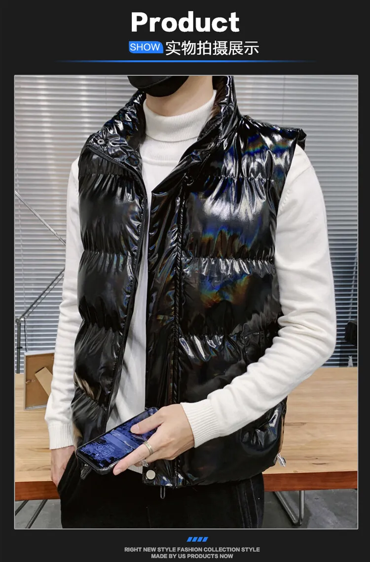 Новинка 2022, черная, серебристая, красная, Золотая куртка без рукавов, мужской облегающий Повседневный жилет с блестящей поверхностью, короткий жилет, безрукавка, женский