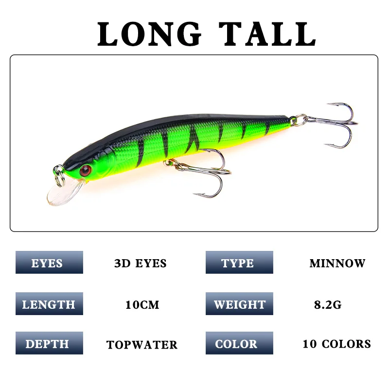 1 шт. рыболовная приманка 100 мм 8 г плавающая гольян жесткая приманка, воблер приманка для ловли карпа в полоску