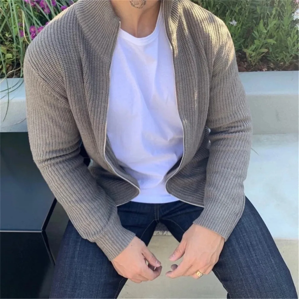 Вязаный свитер, кардиган, мужская повседневная модная однотонная ул...