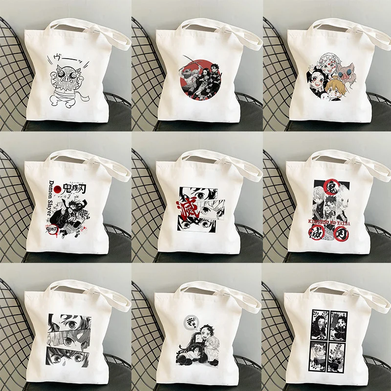 Японские сумки для покупок с аниме-рассеканием демонов, сумка для покупок, сумка-тоут, сумка на плечо, холщовые сумки в стиле панк, вместительная сумка для колледжа