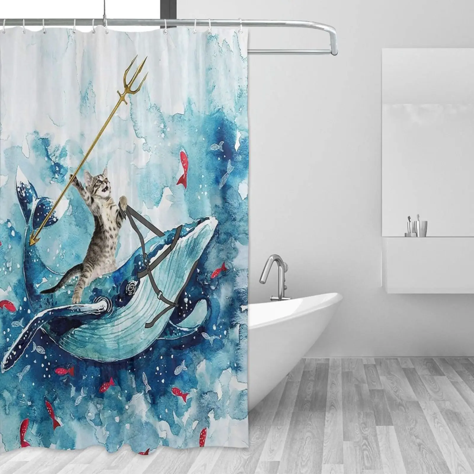Занавеска для душа с изображением кота из мультфильмов, Симпатичные животные, детский Декор для ванной комнаты, водонепроницаемая ткань для ванной, подвесная занавеска с крючками