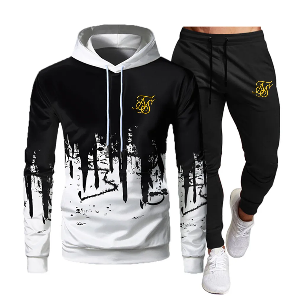 Мужская мода Sik шелковая Толстовка Спортивная одежда Мужская одежда для бега повседневная спортивная одежда мужской спортивный костюм для бега + брюки комплект из 2 предметов