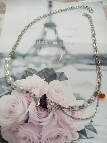 Ожерелье женское, золотистоесеребристое, блестящее, с бабочкой, дво...