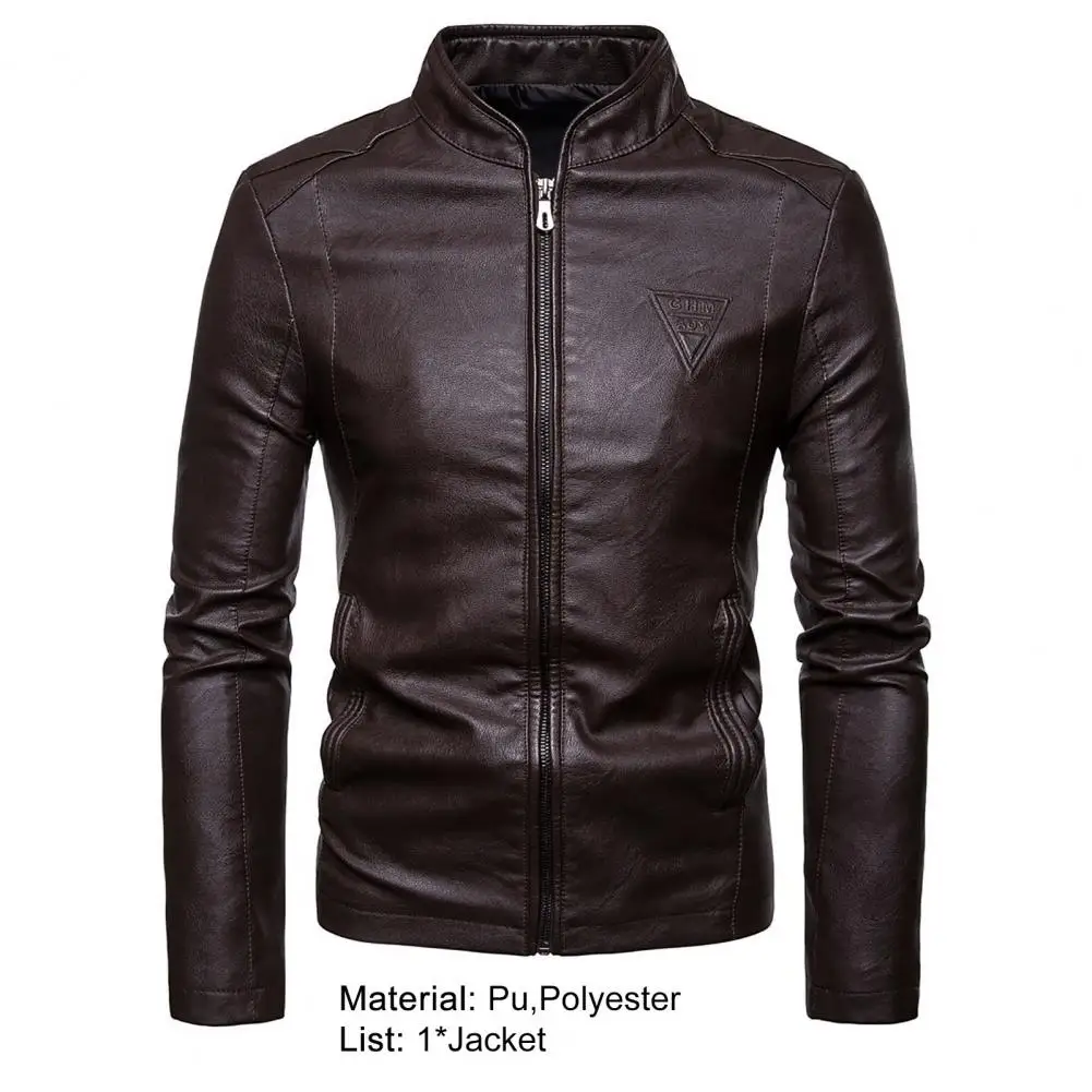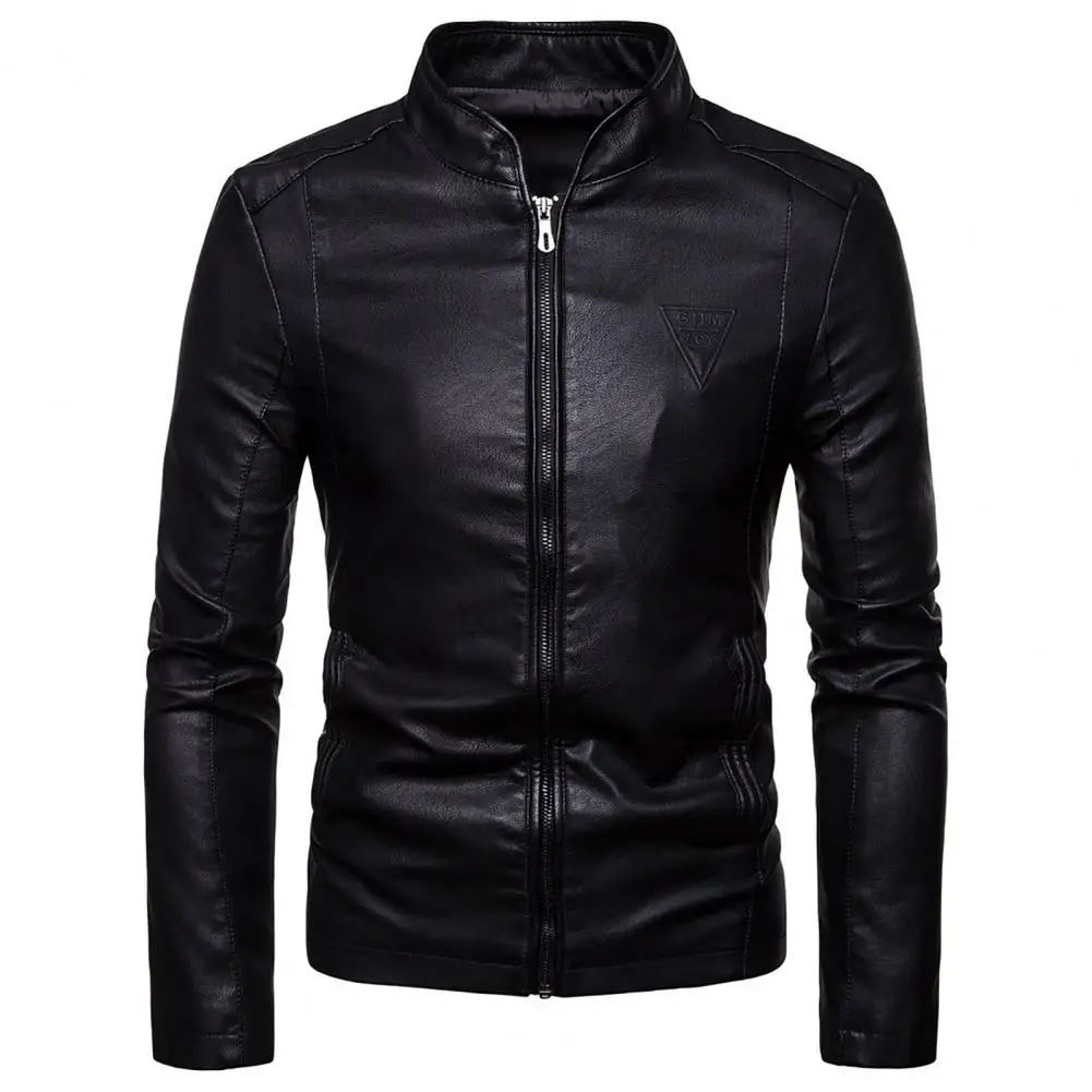 Новинка Осень-зима 2021, Мужская модная кожаная куртка с воротником-стойкой, Мужская Высококачественная куртка с длинным рукавом, chaquetas hombre