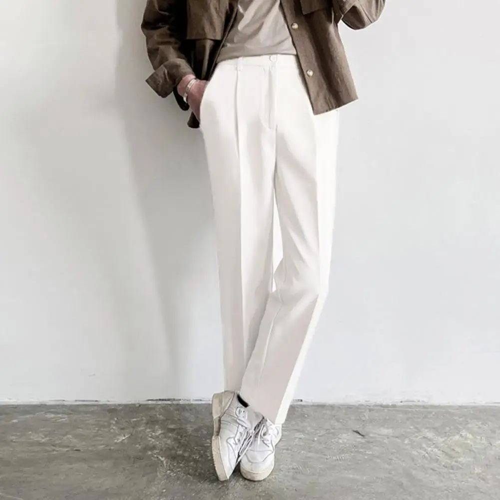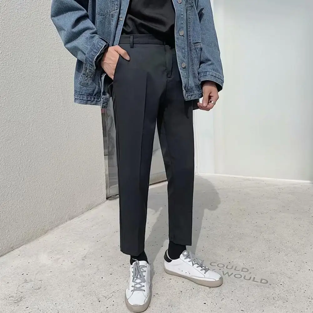 Повседневные Прямые мужские брюки со средней посадкой, однотонные Костюмные брюки, слаксы