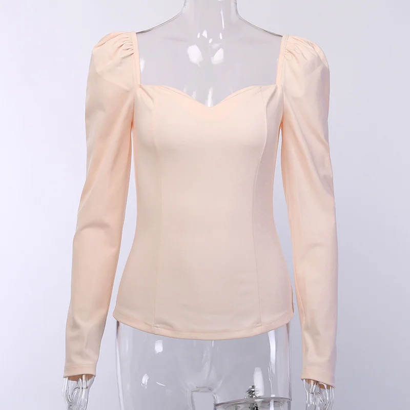 Женская блузка с пышными рукавами, однотонная приталенная блузка с ...