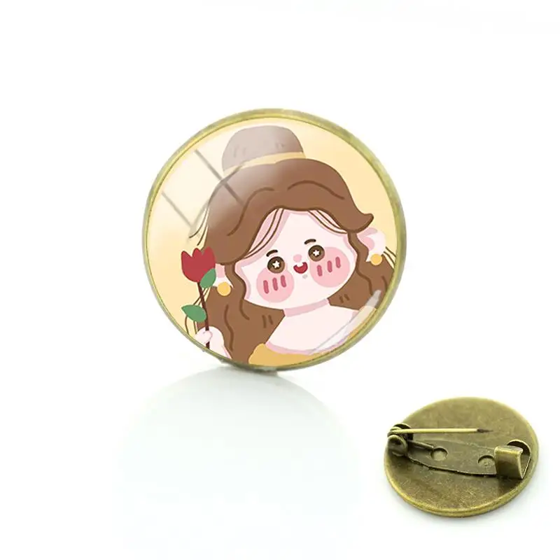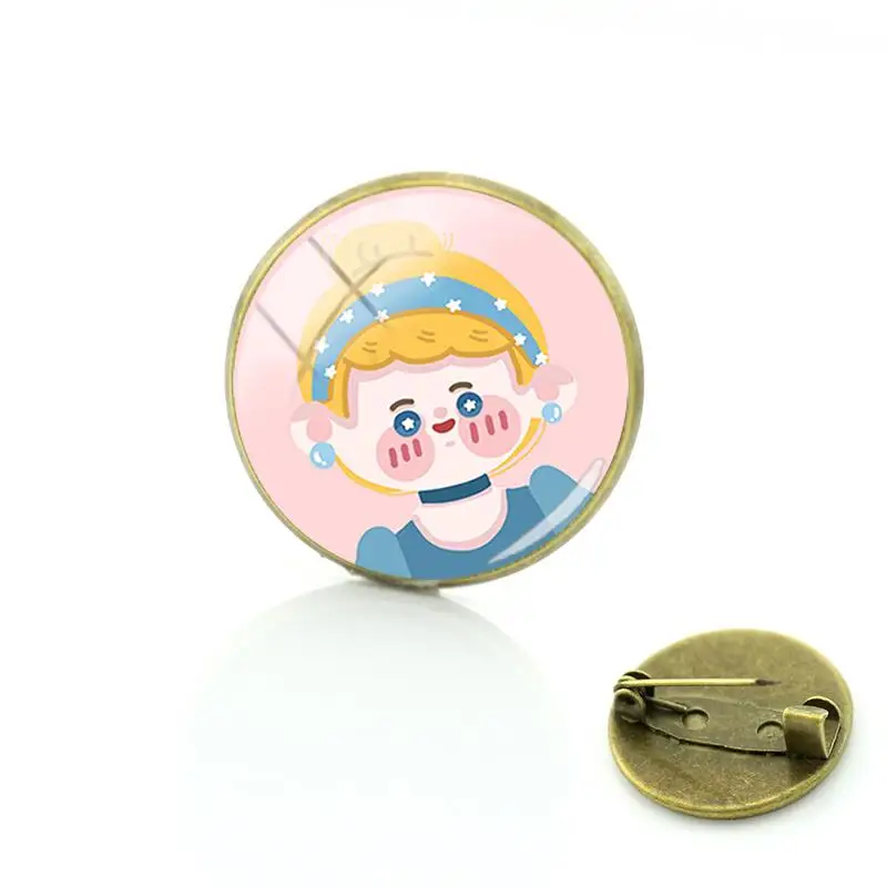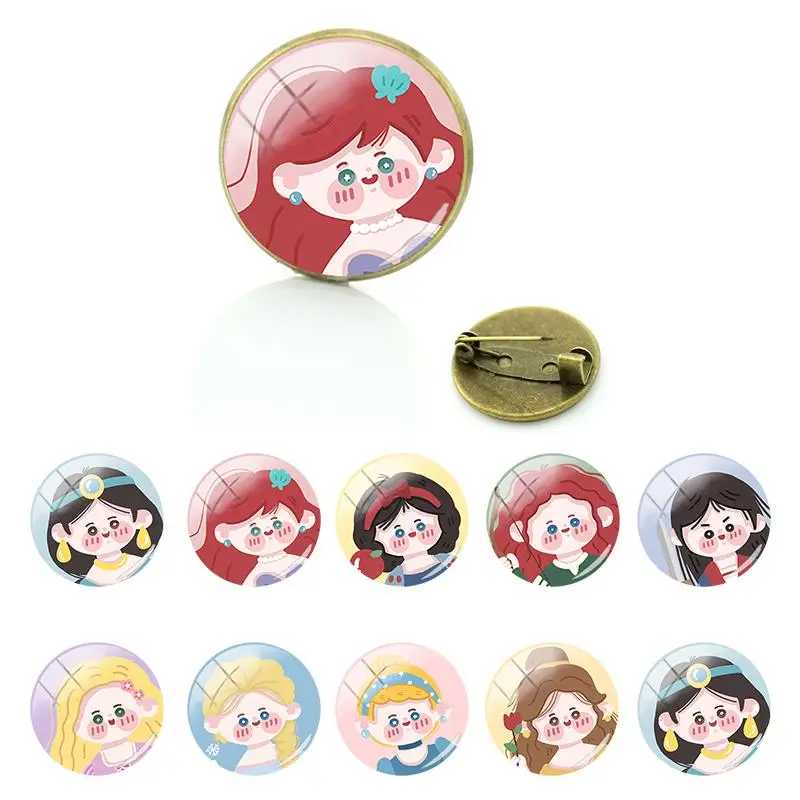 Дисней Милый милый стиль Броши принцессы булавка Круглый Мультфильм Изображение Стекло Винтаж для девочек женские подарки Ювелирные изделия горячая Распродажа FWN377Изображения продуктов: