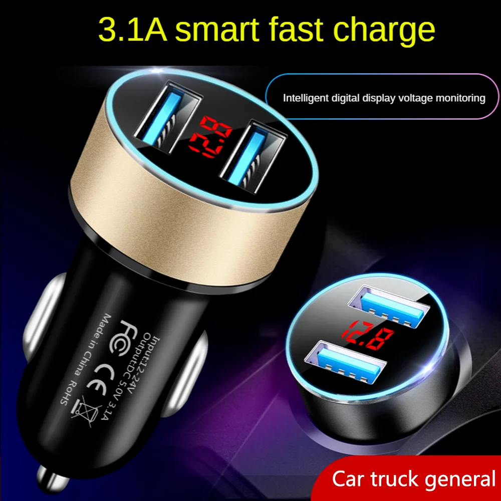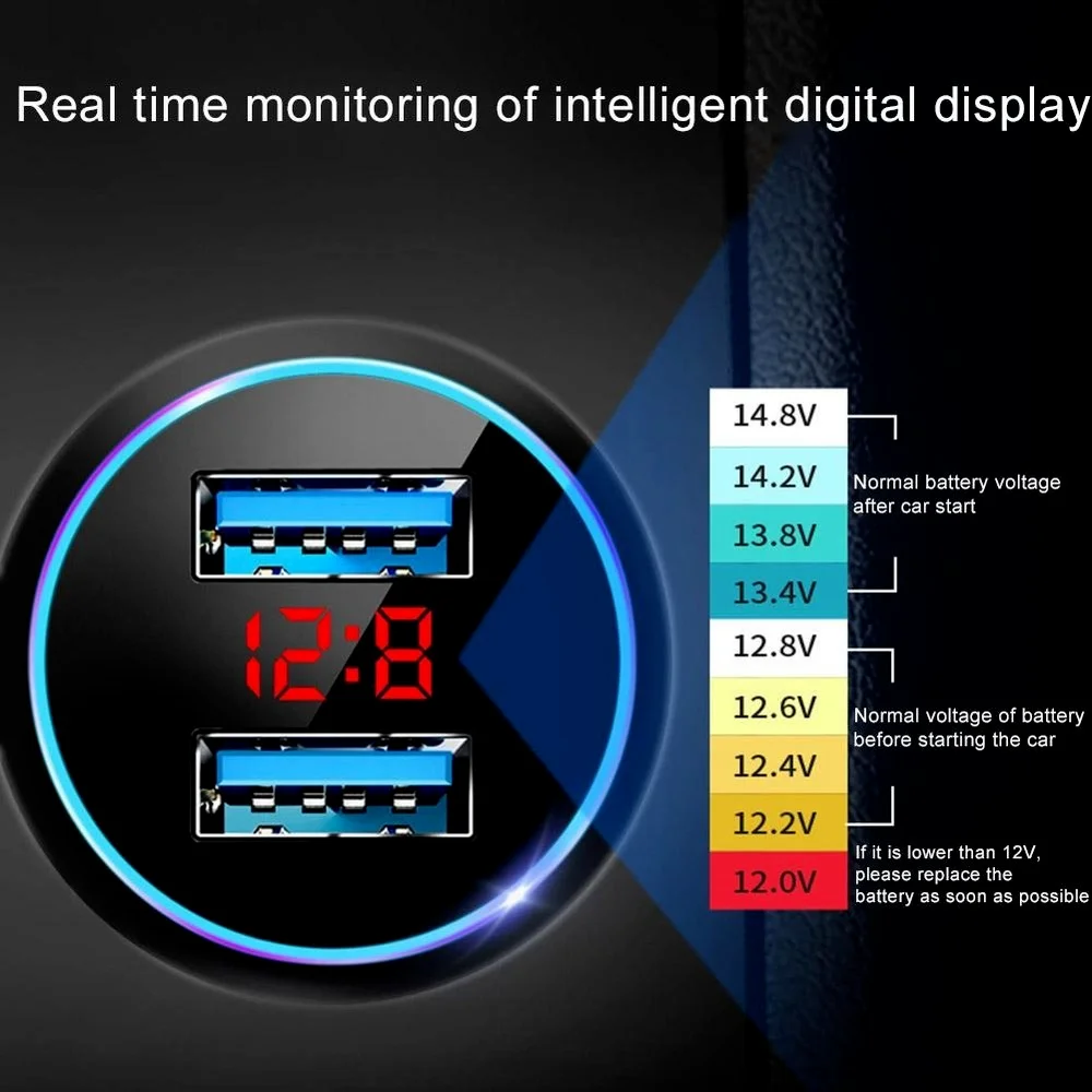 Автомобильное зарядное устройство USB с 2 портами и светодиодной по...