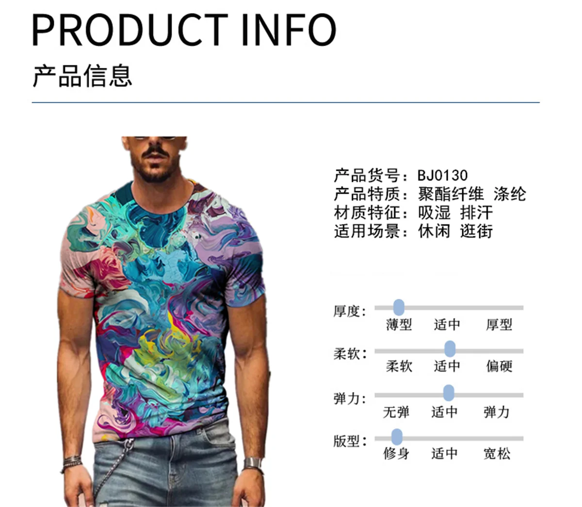 Летняя мужская футболка с трехмерным графическим 3D-принтом, Повсед...