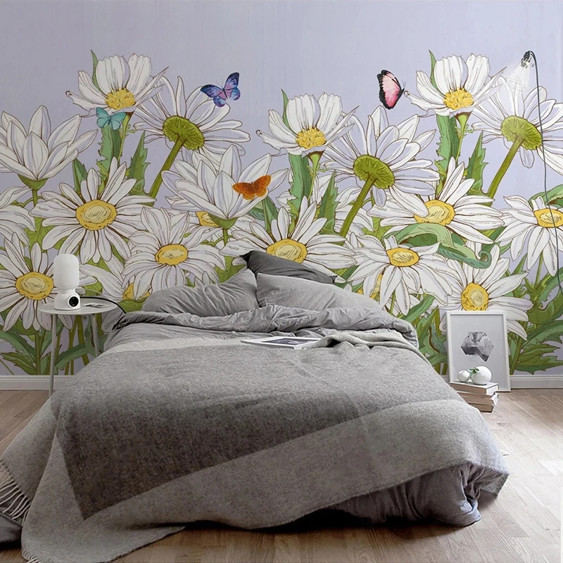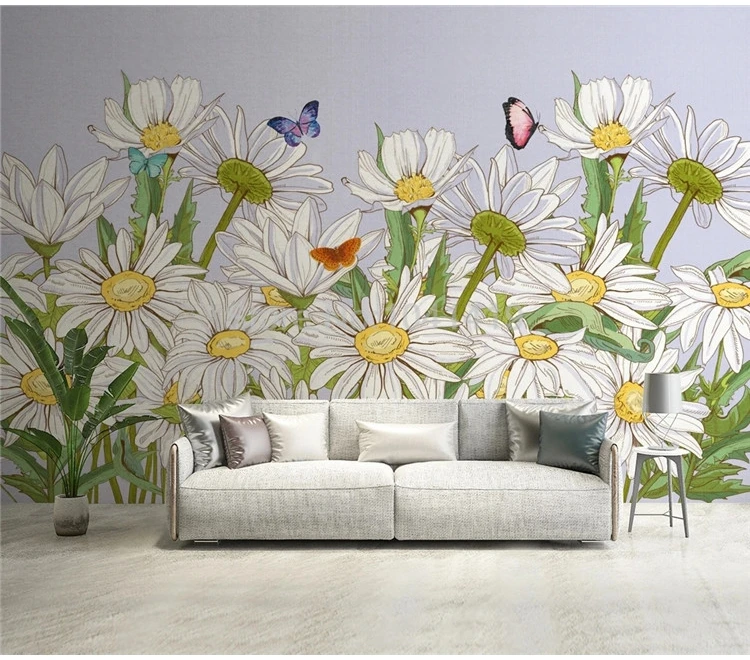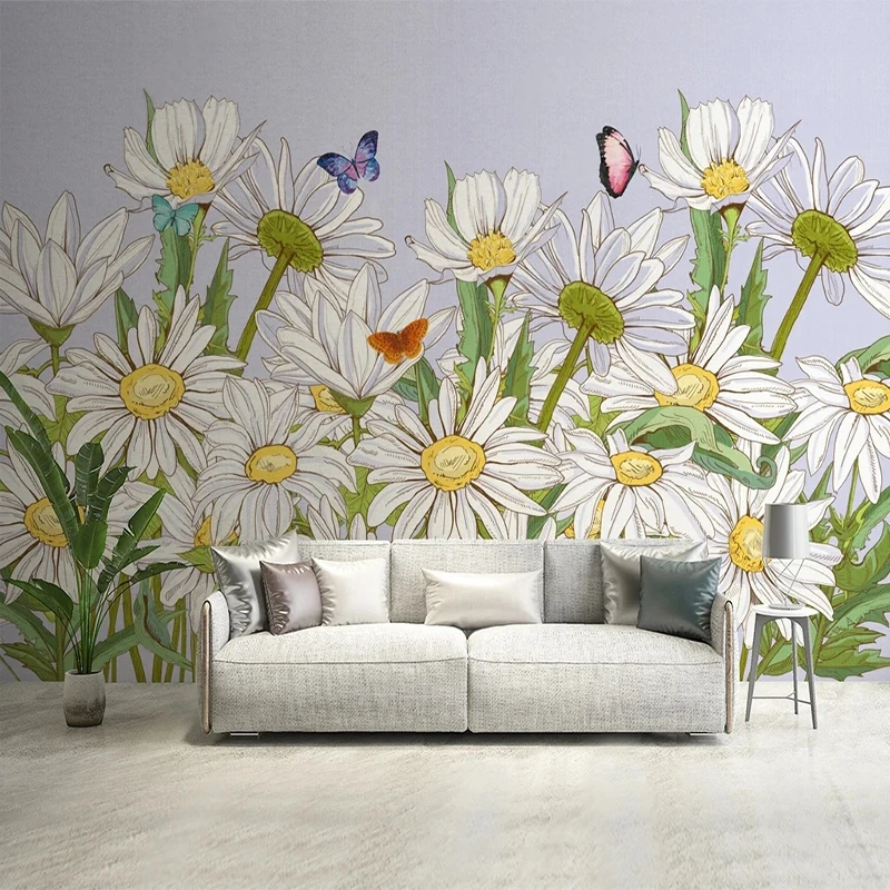 Фотообои на заказ скандинавские современные минималистичные 3D маргаритки цветы Гостиная ТВ диван фон настенная живопись Papel де Parede 3 D