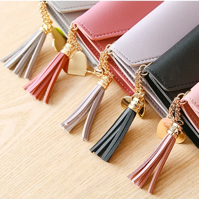 Роскошный длинный женский кошелек, женский клатч, Корейская версия, милый кошелек с подвеской в виде сердца и кисточкой, простые кошельки, женская сумка для монет из искусственной кожи