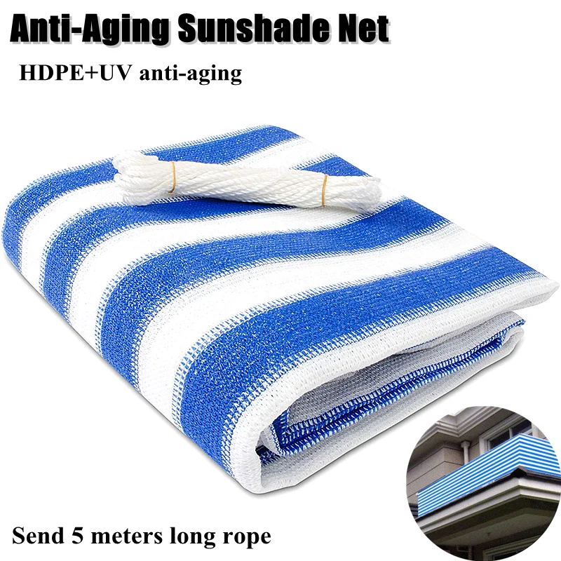 Цвет: синий и белый в полоскуВес: 125 г на квадратныйСкорость затенения: около 75% ~ 80%Функция: затенение, защита от солнца, охлаждение, светильник, защита от пыли